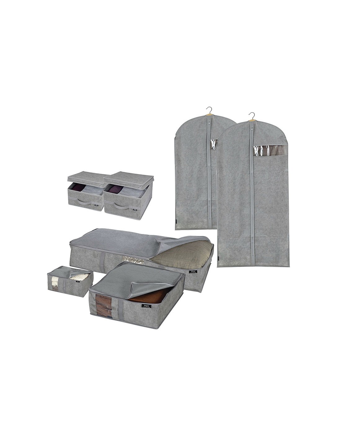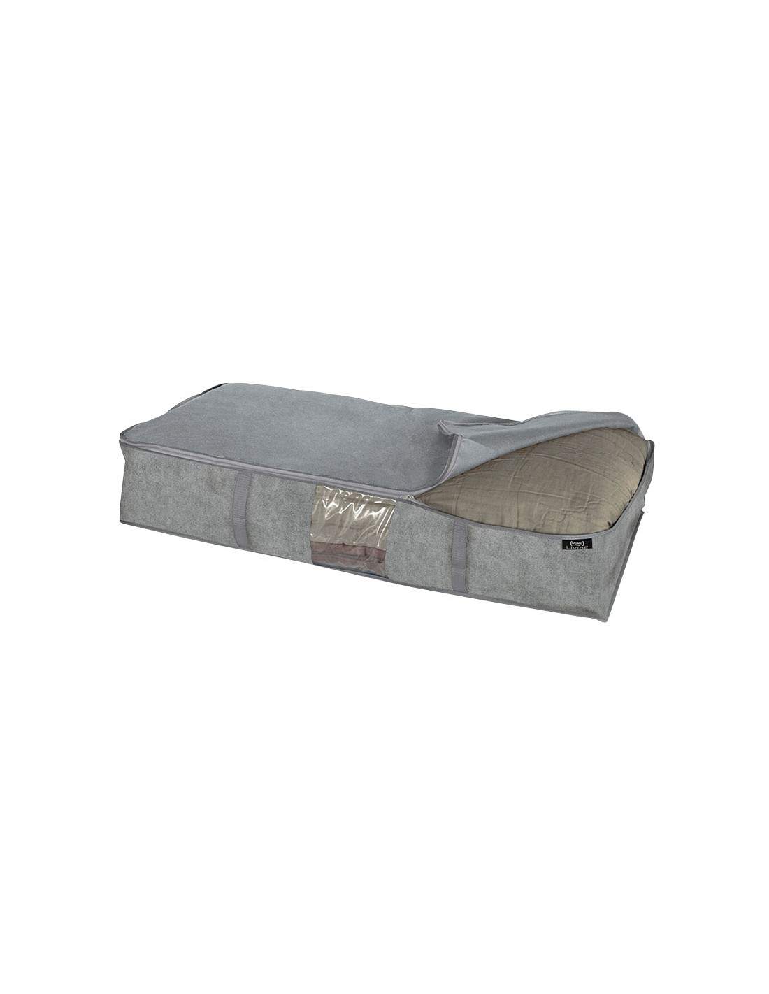 Fundas y cajas ordenación JOBGAR serie Stone Polipropileno no tejido de aspecto textil. Material lavable y transpirable. Ventana para ver el contenido interior. Guardamantas XL. 95x45xh.18 cm.