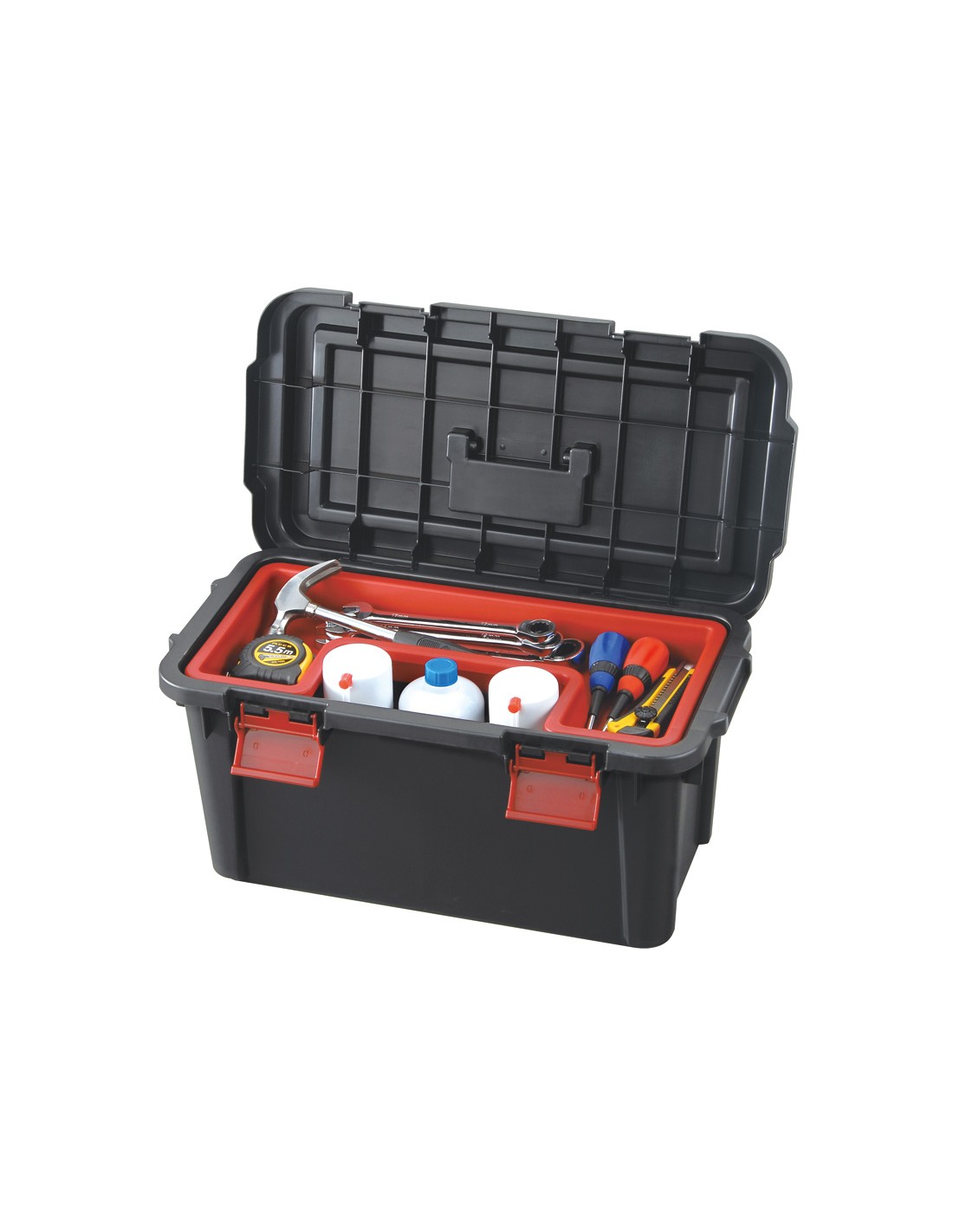 Caja herramientas RATIO ToolBox 6697 Estructura polipropileno reforzado. Cierres ABS de gran resistencia. Bandeja interior con hueco para colocar verticalmente botes de spray o tubos. Cajas apilables entre sí. Color negro/rojo acabado mate. Fabricadas en Japón. 56x29xh.29 cm. 2 cierres.