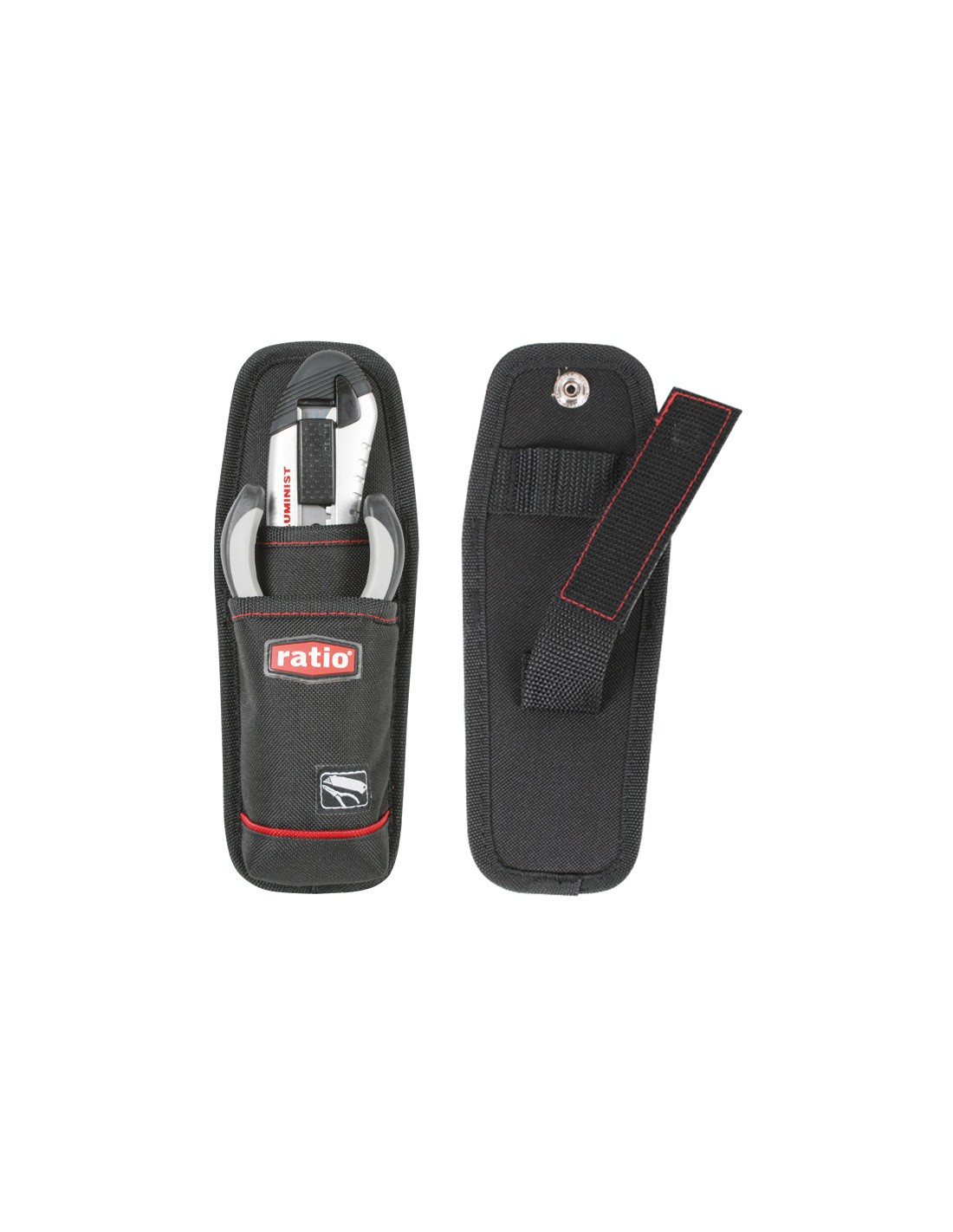 Porta alicate/cúter RATIO 5054-6 Costuras dobles reforzadas. Construción ligera y resistente en 3 capas: poliéster - eva - poliéster. Exterior hidrorepelente 600 deniers impermeable. 8xh.22 cm.\r\n2 compartimentos.