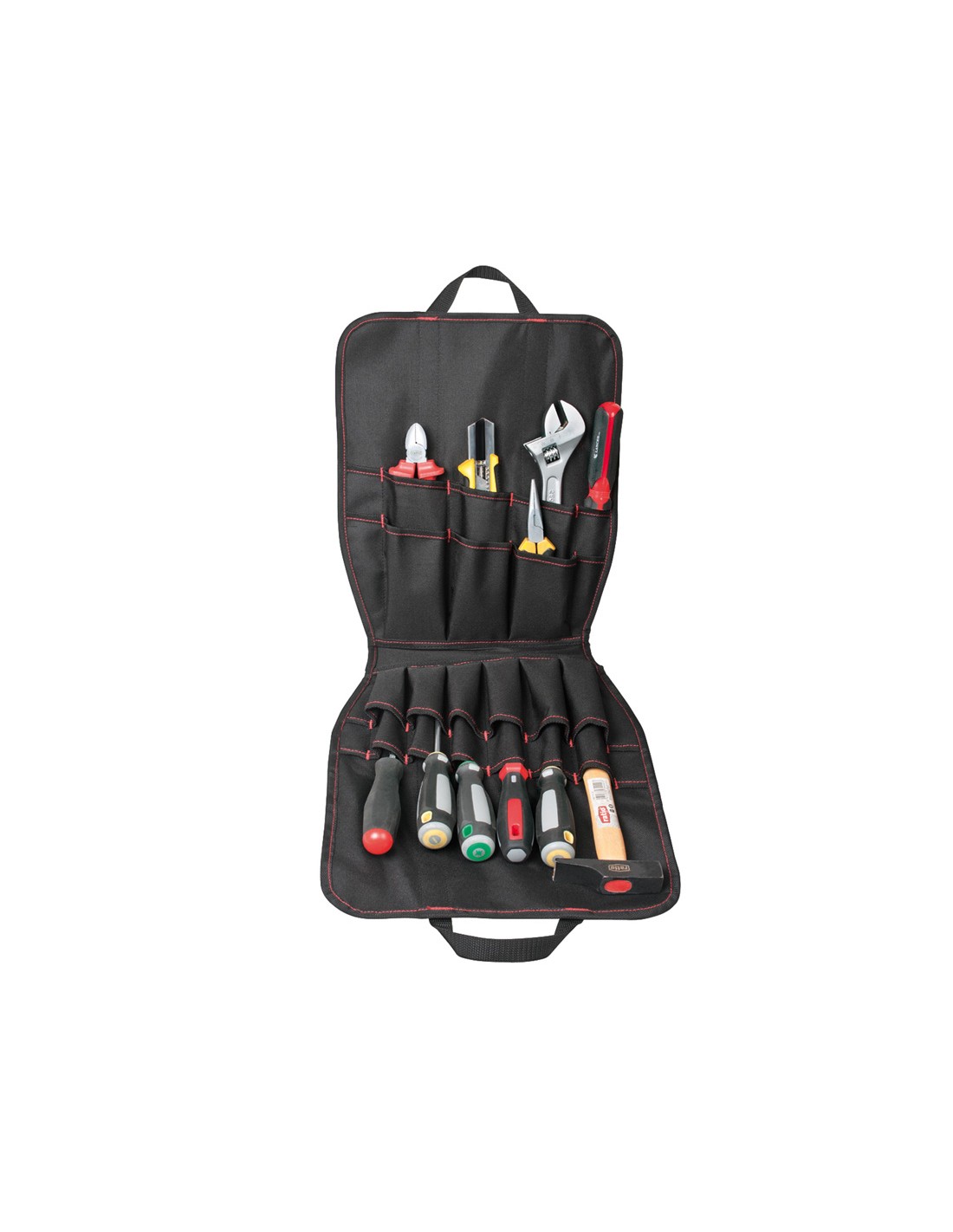 Mochila portaherramientas RATIO 5055-8 Estructura de nilón de gran calidad 600 denier, multitud de departamentos para almacenar una gran variedad de herramientas, espacios laterales para transportar herramientas largas como niveles. Cierres laterales de seguridad. Placa interior portaherr 52 bolsillos en la placa interior extraíble.