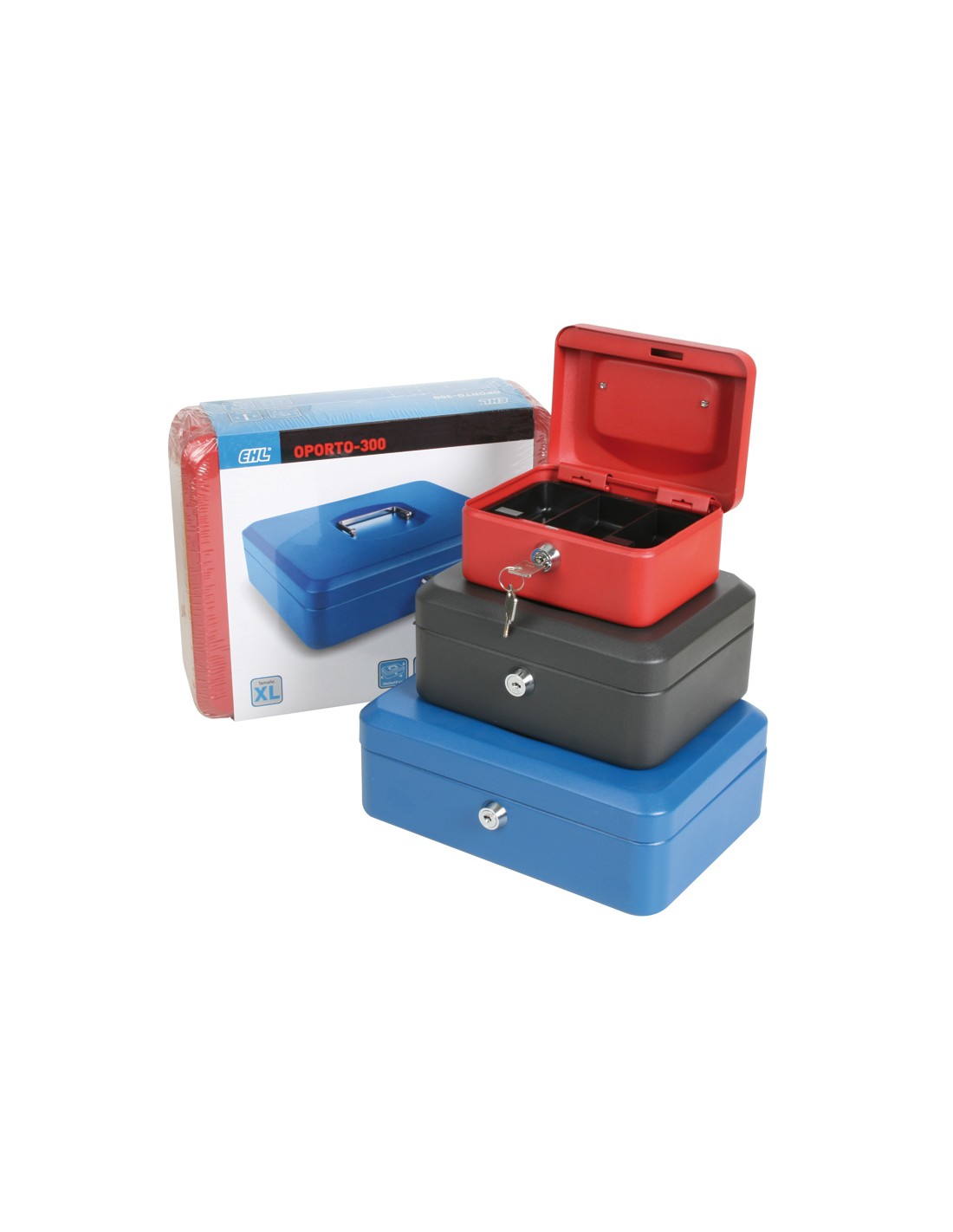 Caja de caudales EHL Serie Oporto. Acero pintado. Bandeja portamonedas interior incluida. 4 medidas: S, M, L, XL. 3 colores: azul, negro o rojo. Azul. 152x115xh.80 mm.
