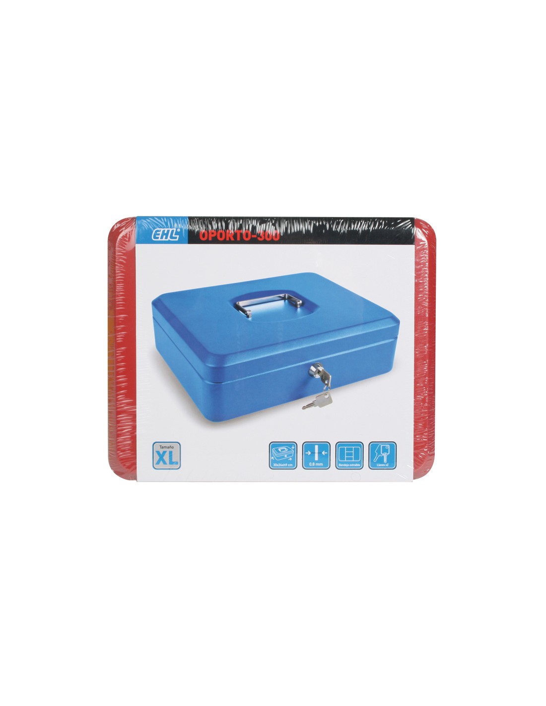 Caja de caudales EHL Serie Oporto. Acero pintado. Bandeja portamonedas interior incluida. 4 medidas: S, M, L, XL. 3 colores: azul, negro o rojo. Rojo. 152x115xh.80 mm.