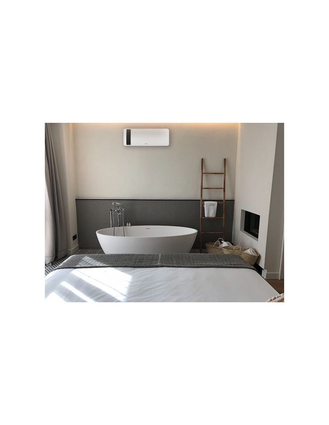 Calefactor split de pared FÁCULA Nexeo 2001 Función ventilación y calefacción. Display LED visualizadora de funciones. Programación diaria / semanal. Temporizador 24h. Bloqueo para niños. Elemento de seguridad PTC cerámico. Protección contra sobre calentamiento. Seguridad IP-23. Soportes de fijación a pared incluido. Mando a distancia (pila CR2025 incluida). Función ventanas abiertas. 1.000-2.000 W.