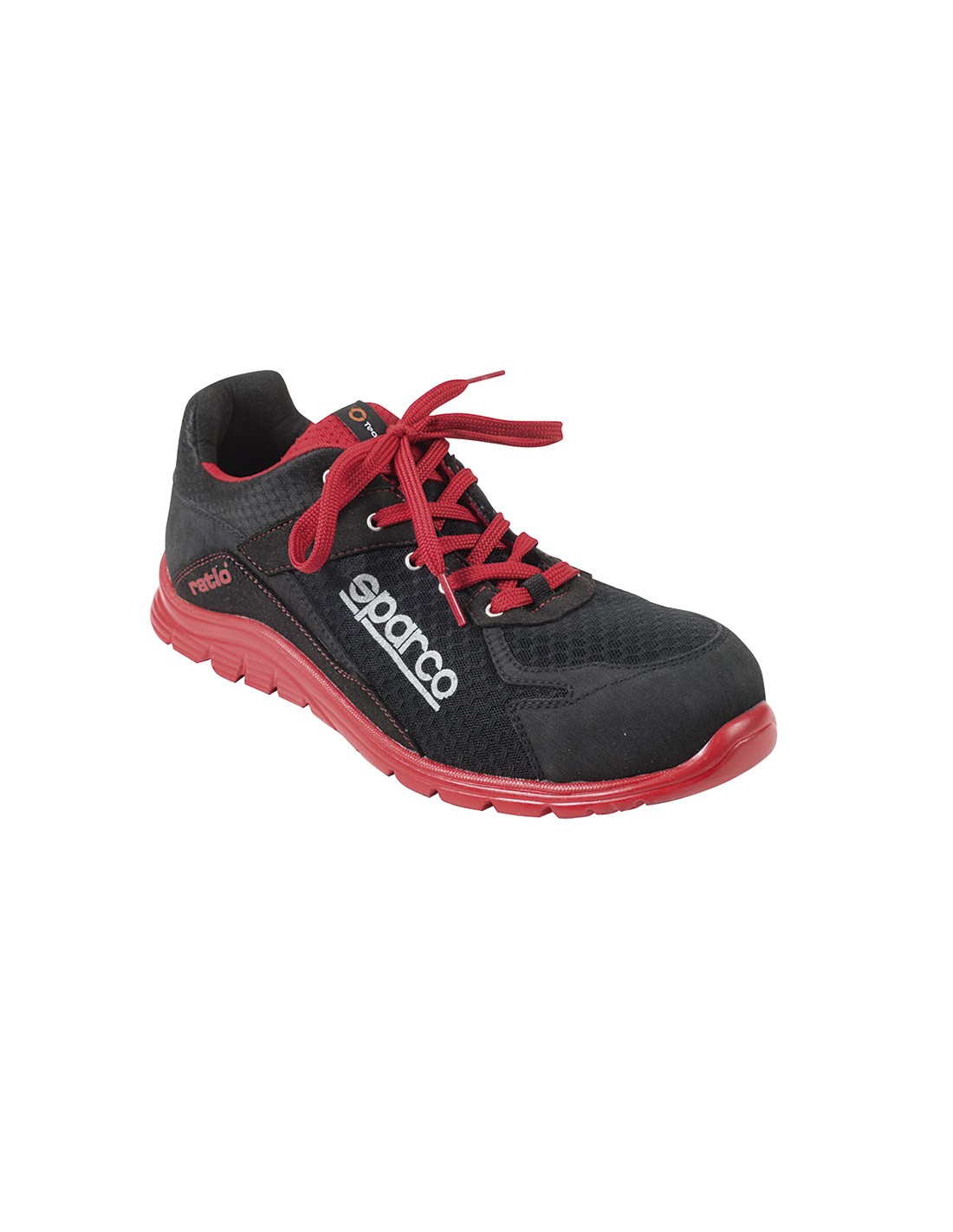 Zapatilla seguridad RATIO by Sparco Siroco I Ultraligera, libre de metal. Exterior en malla 3D transpirable y antirasguños con inserciones de serraje. Suela de poliuretano ligero y super flexible, antiestática y de gran adherencia. Excelente absorción de energía. Puntera de composite y plantilla de fibra sintética antiperforación Zero. Usos: donde la temperatura ambiental sea elevada y se precise un calzado con un alto nivel de transpirabilidad. Ideal para personas que tengan que permanecer largos periodos de tiempo con el calzado y que precise máxima comodidad. CEE EN 20345:2011. S1P. SRC. Tallas 39-46
