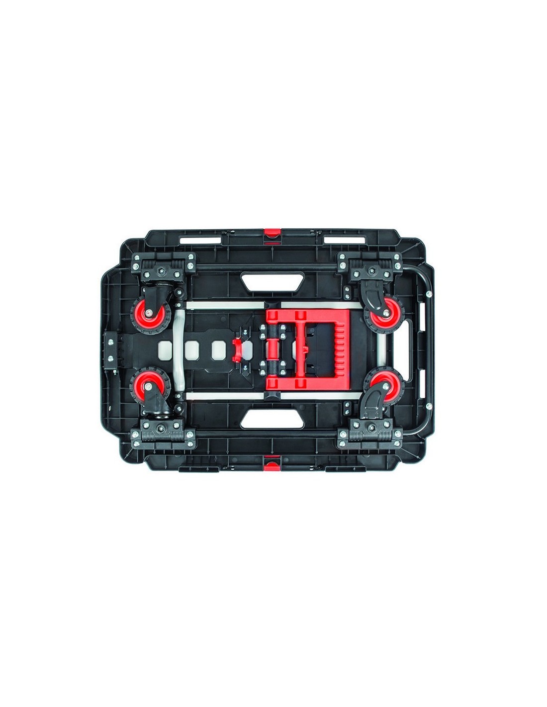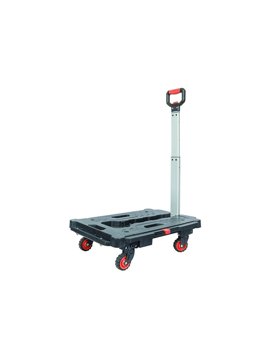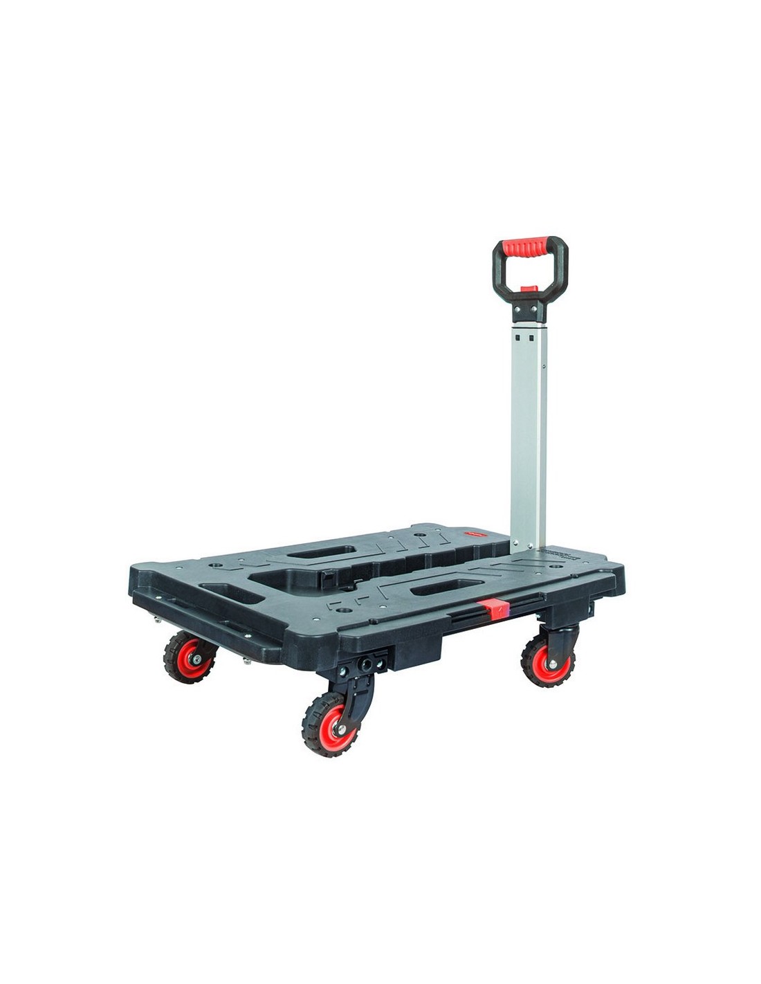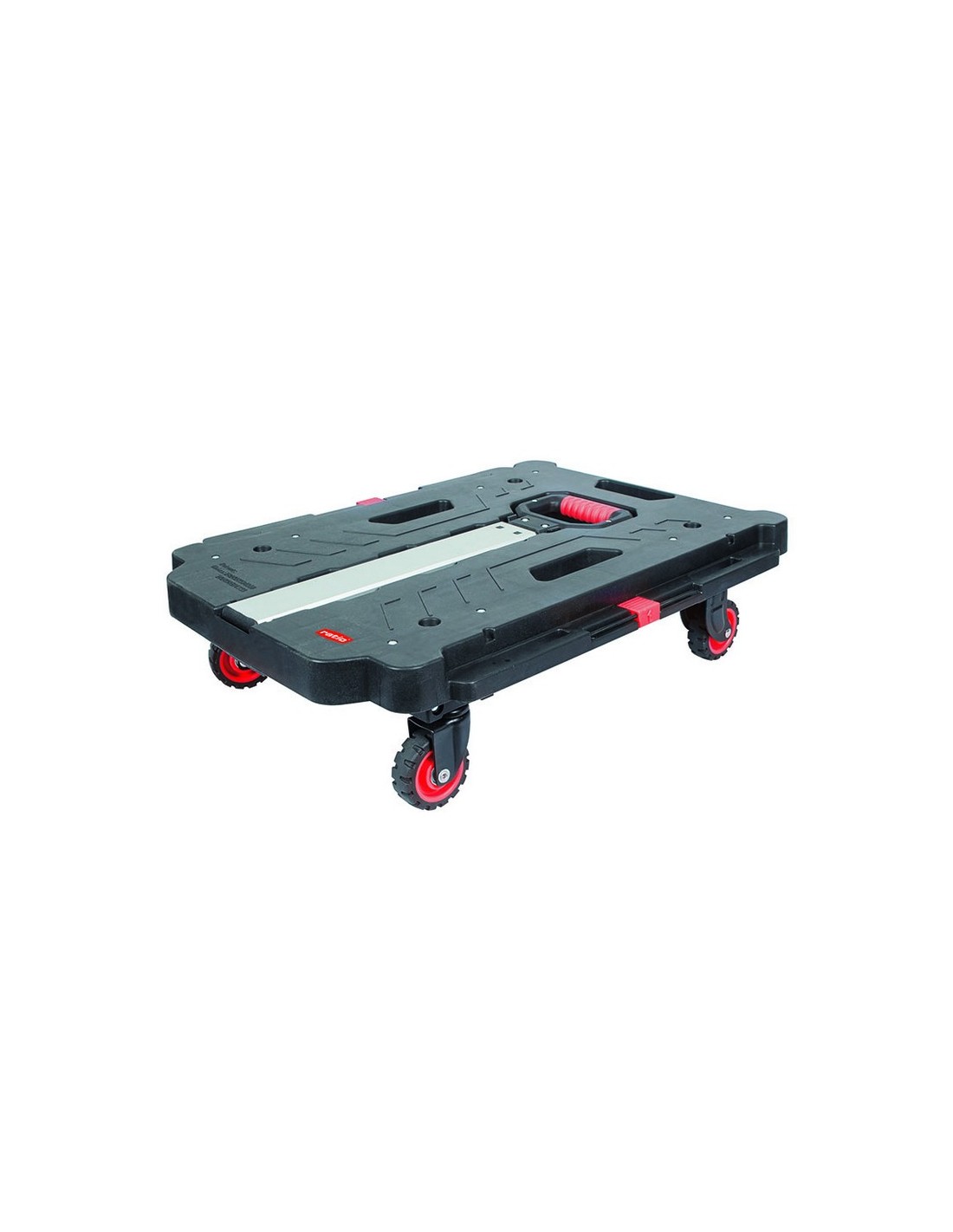 Plataforma rodante con mango RATIO 7137H1 Carretilla ligera de mano con 4 ruedas plegables. Estructura de polipropileno, aluminio y ruedas de goma sintética TPR. Multifunción 2 en 1 (plataforma rodante con asa y plataforma con asa plegada de 4 ruedas). Peso máximo 135 kg.