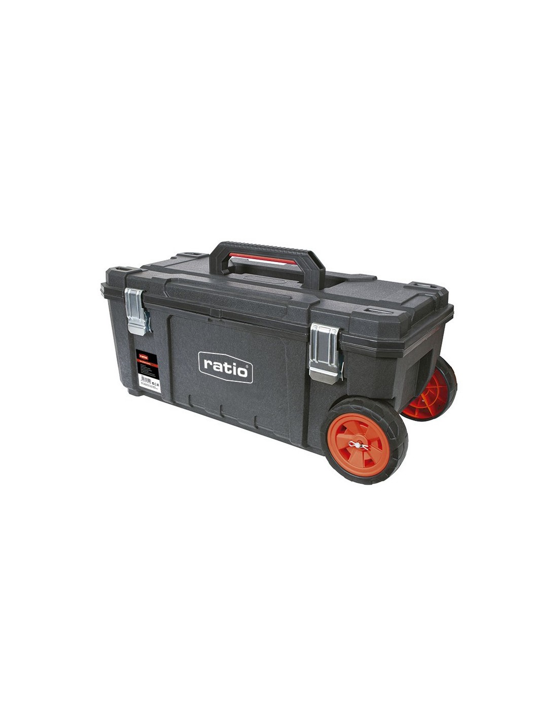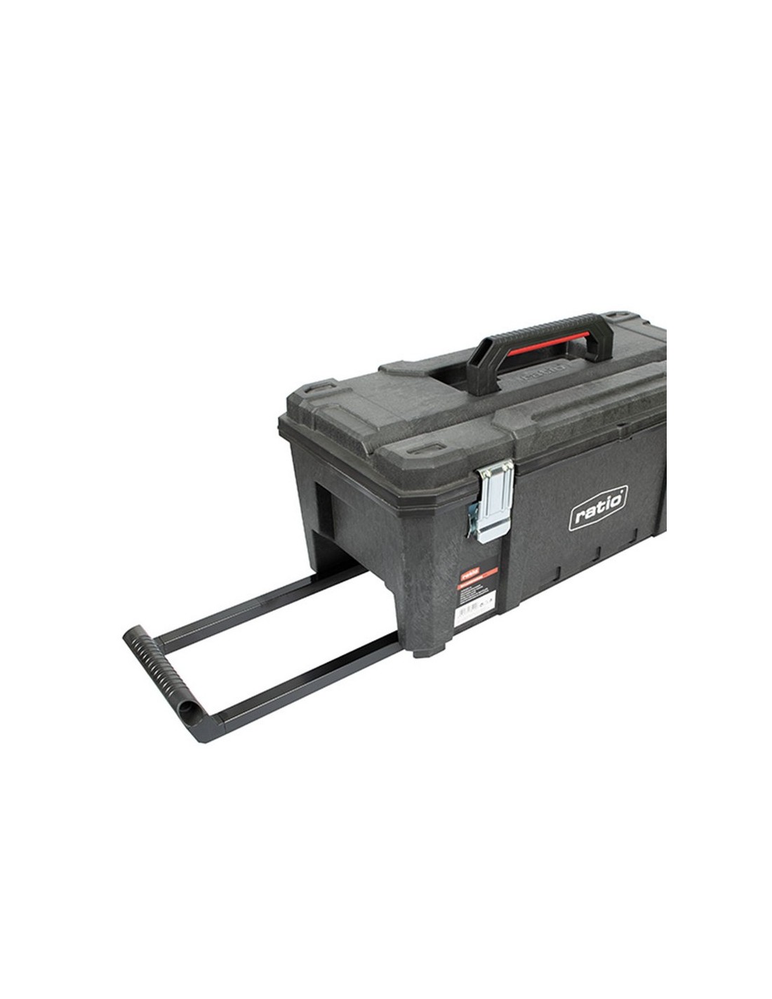 Taller móvil RATIO 6704-28 Armazón espuma estructural resistente. Tapa con sello resistente al agua. Media bandeja extraíble. Tapa con ranura en V integrada. Ruedas caucho ø 145x50 mm. Asa metálica telescópica. Cierres metálicos y hueco para candado. Dimensiones. 71x33,4xh.29,5 cm.