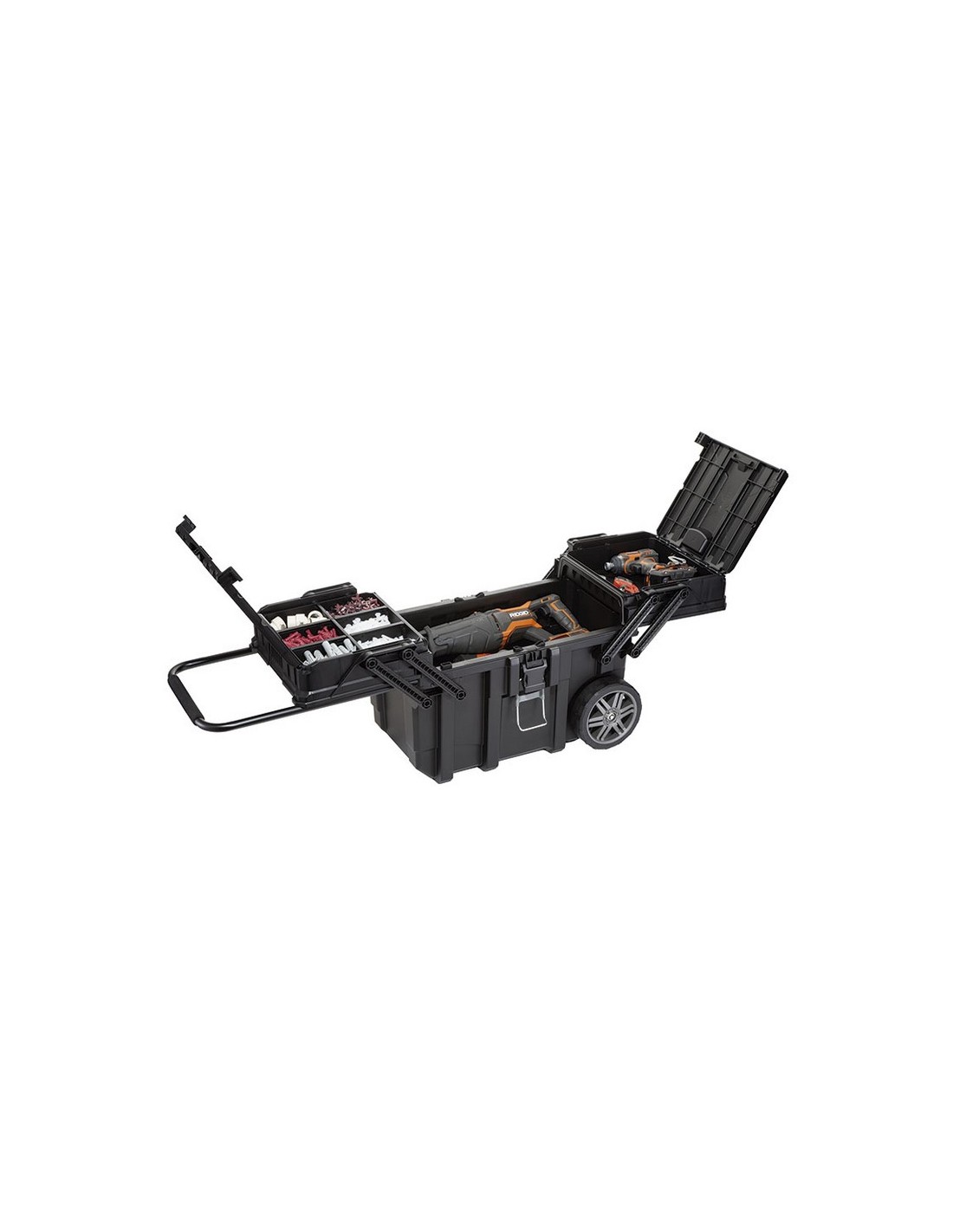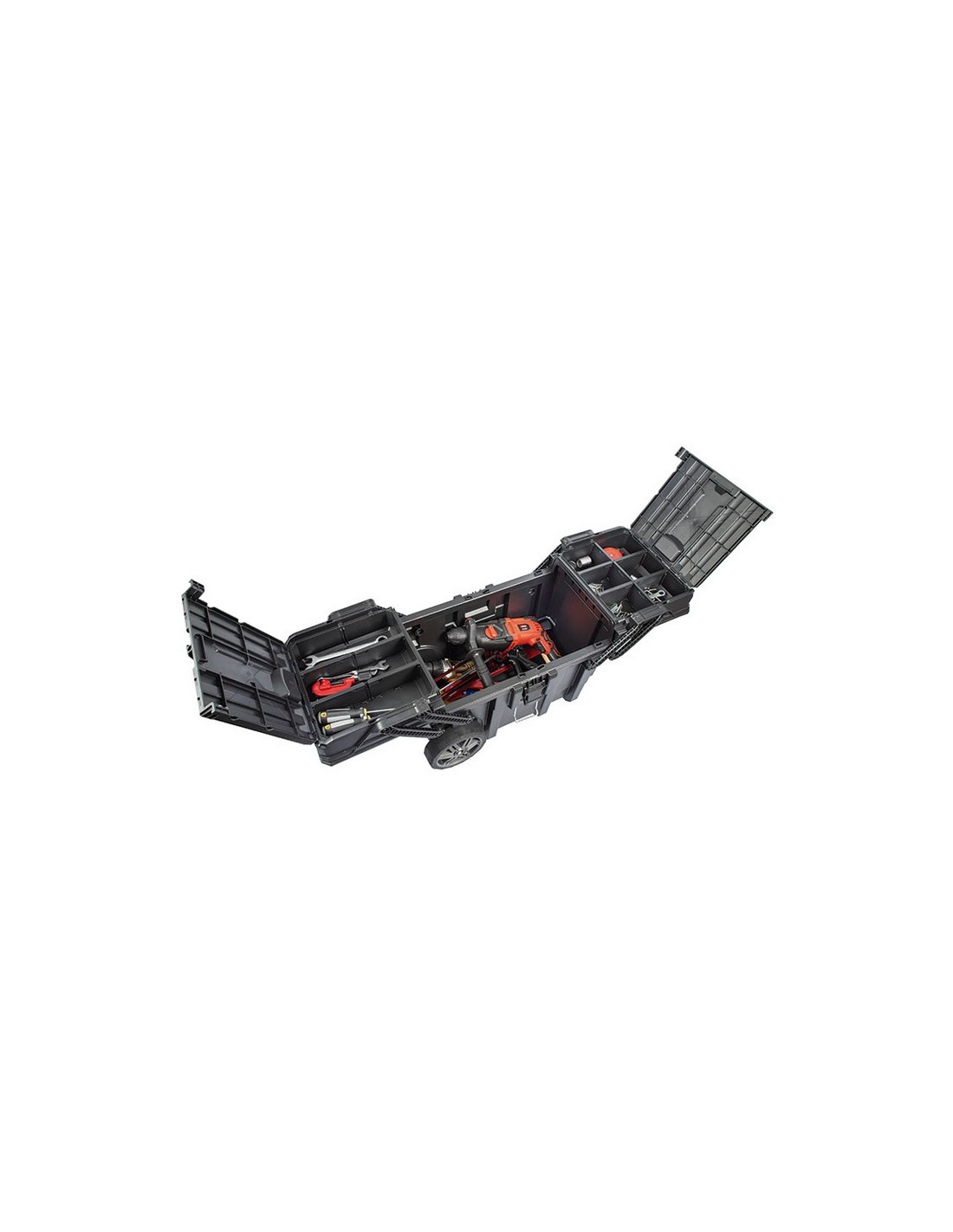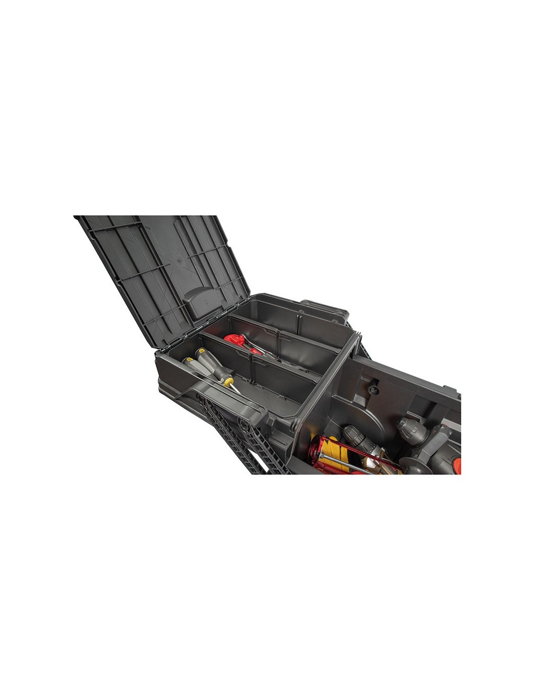 Taller móvil RATIO Cantilever 2311 57 l. Sistema apertura cantilever para fácil distribución de contenido. Asa metálica con empuñadura de goma. Cierres metálicos. Resistente al agua y polvo. Ruedas goma ø 7". 8 compartimentos con separadores incluidos. 64,6x37,3xh.41 cm.