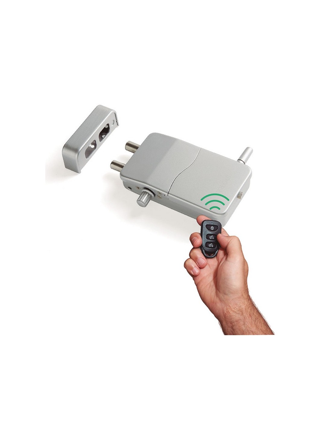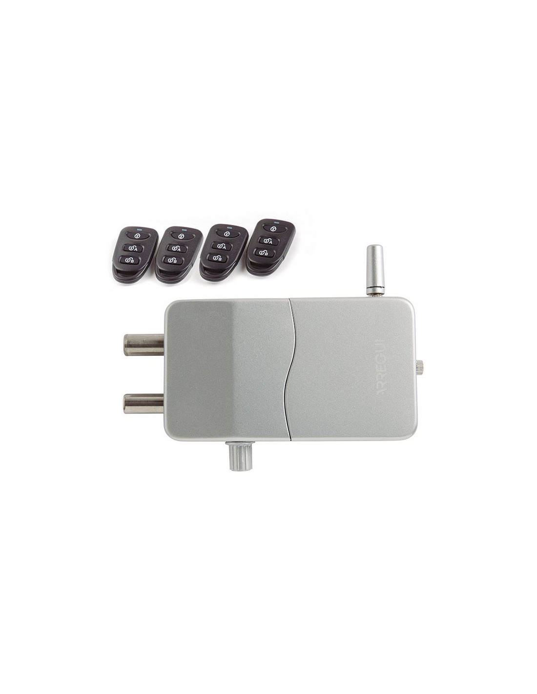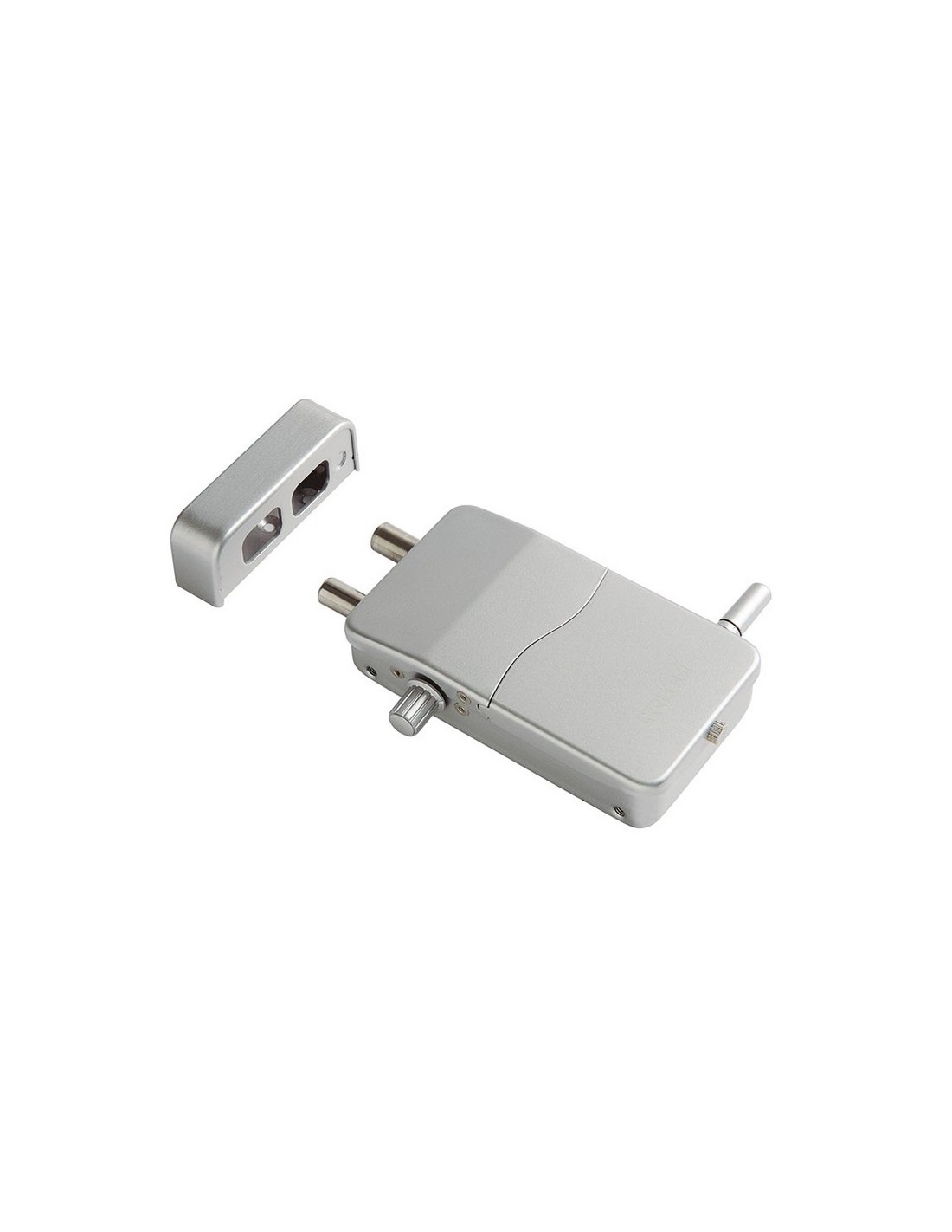 Cerradura invisible Arregui con alarma Uso interior. Sin cables. 4 mandos a distancia. Códigos evolutivos. 4 pilas AA + batería emergencia 12 V. Alcance puertas metal 2 m, puertas madera hasta 5 m. Fácil configuración. . 13,3x7,5x3,5 cm. Plateada.