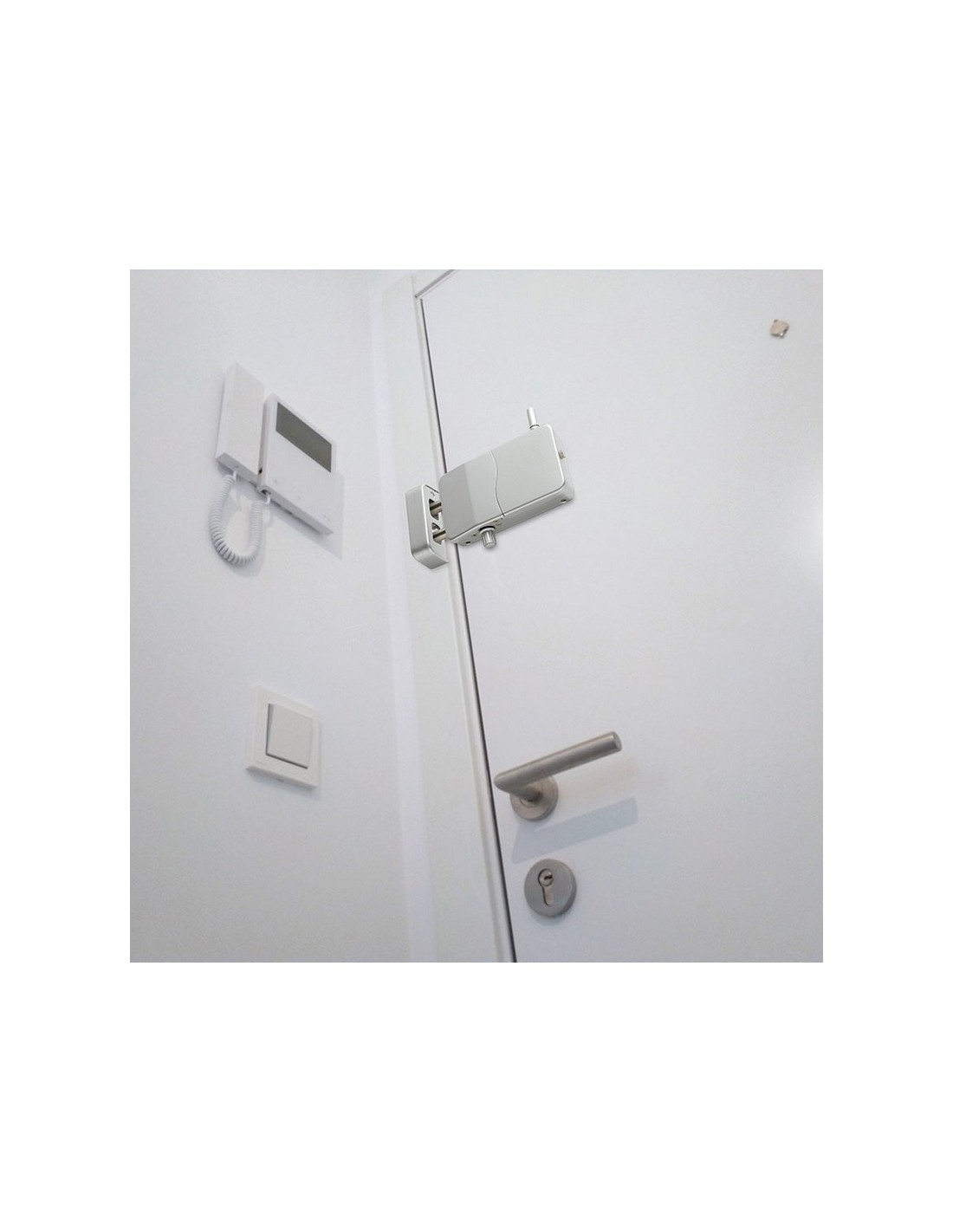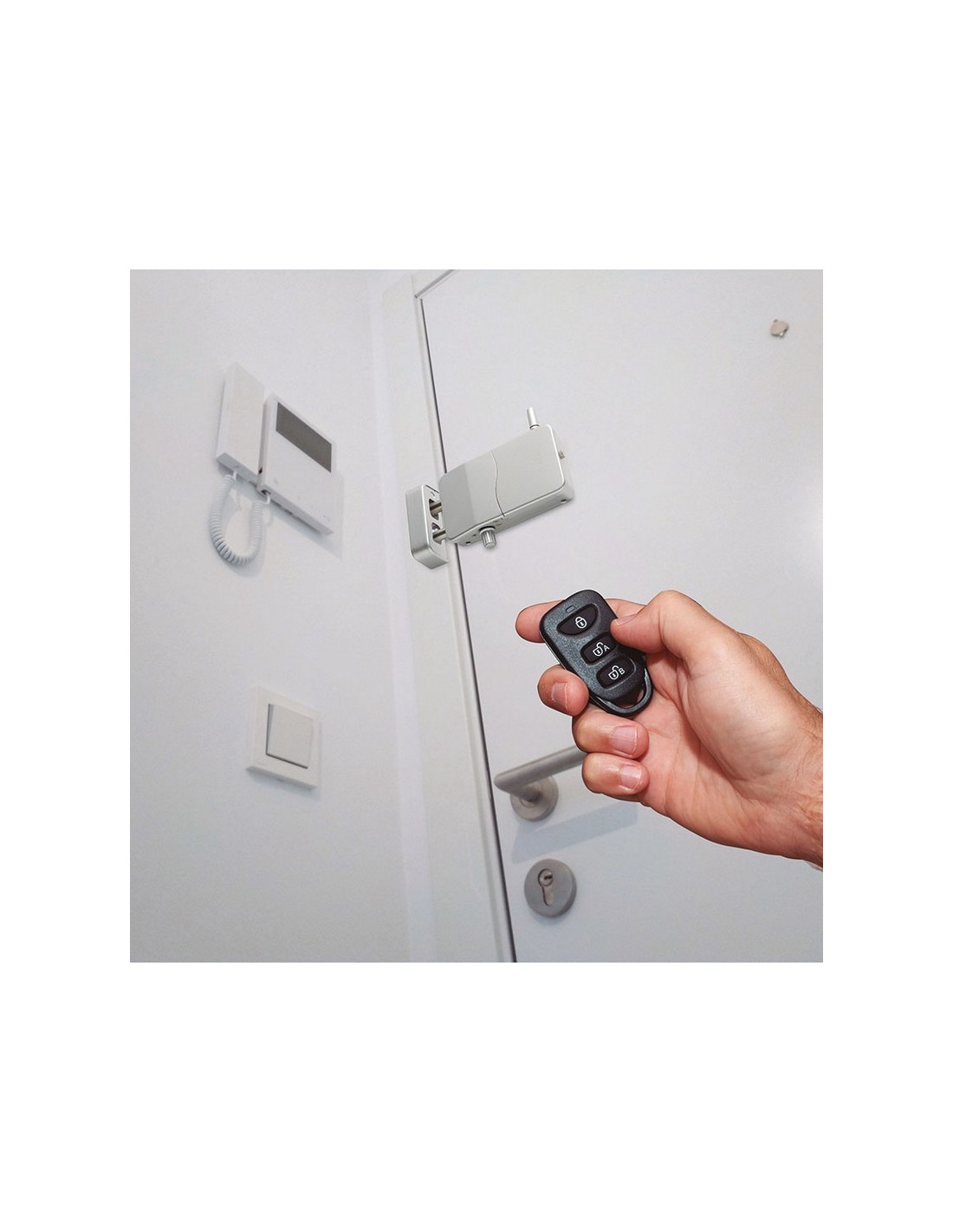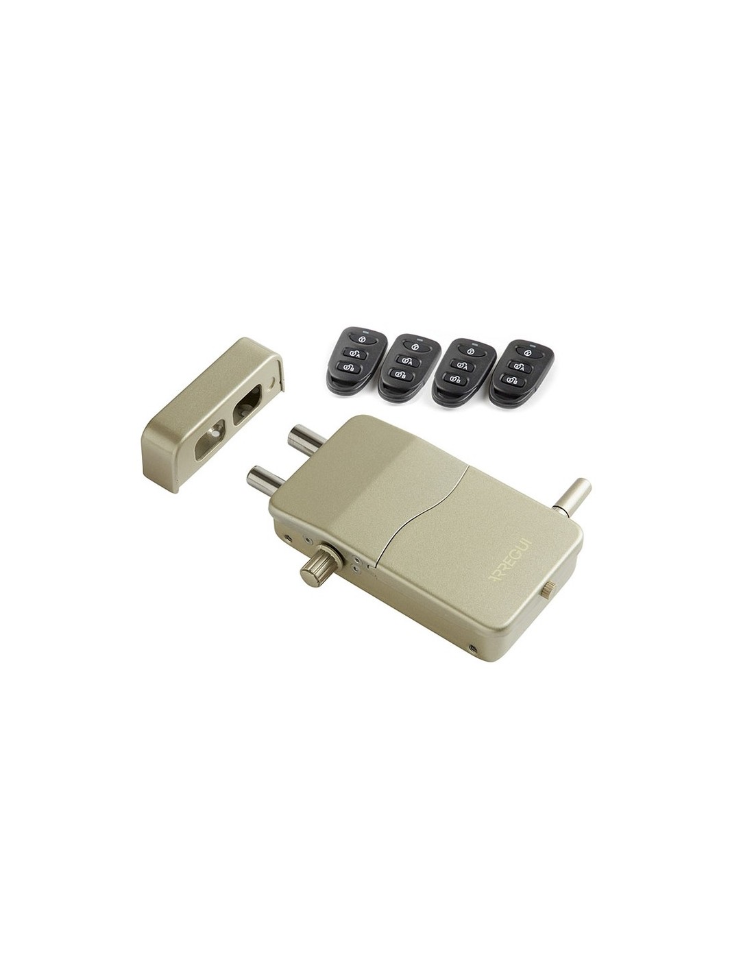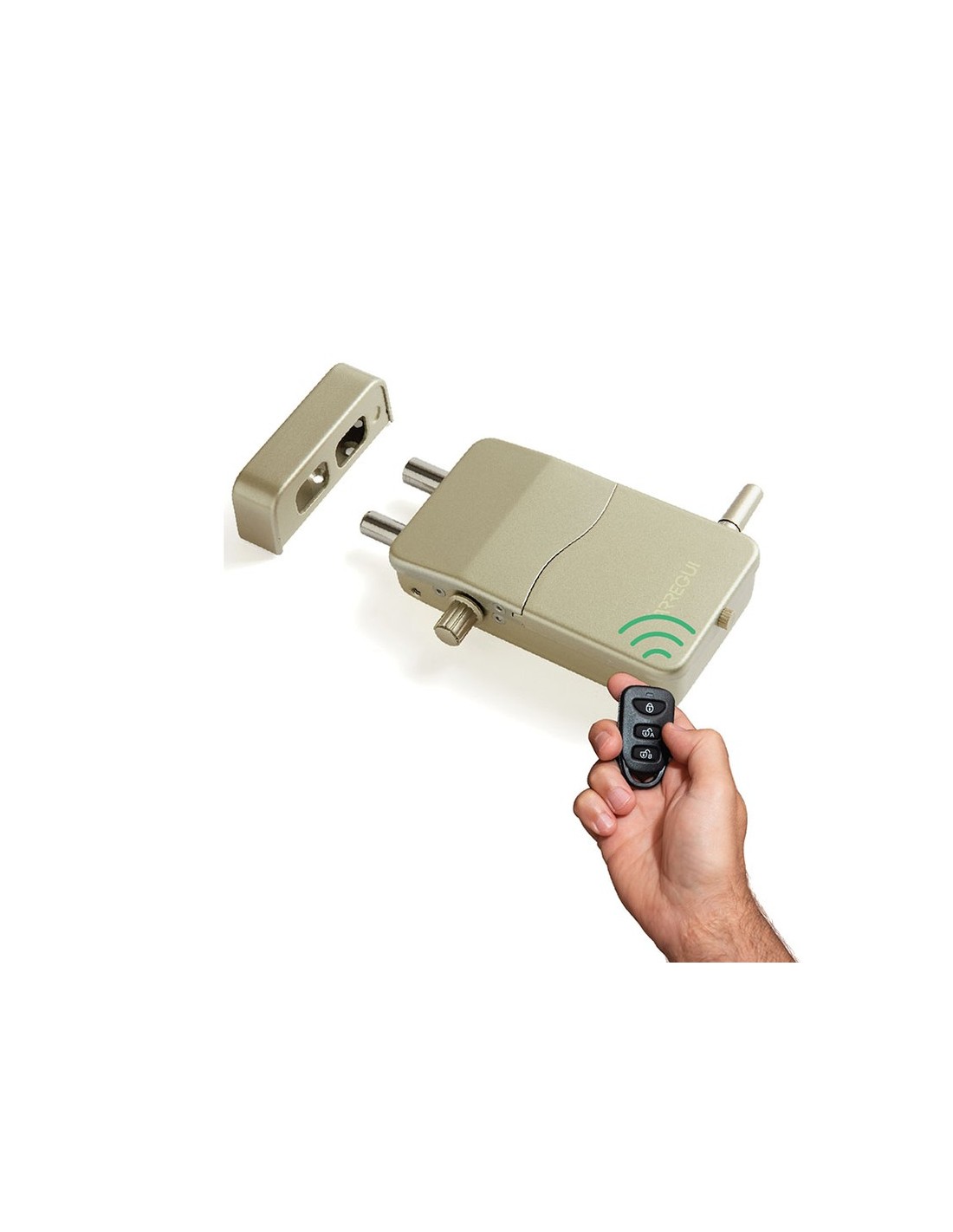 Cerradura invisible Arregui con alarma Uso interior. Sin cables. 4 mandos a distancia. Códigos evolutivos. 4 pilas AA + batería emergencia 12 V. Alcance puertas metal 2 m, puertas madera hasta 5 m. Fácil configuración. . 13,3x7,5x3,5 cm. Plateada.