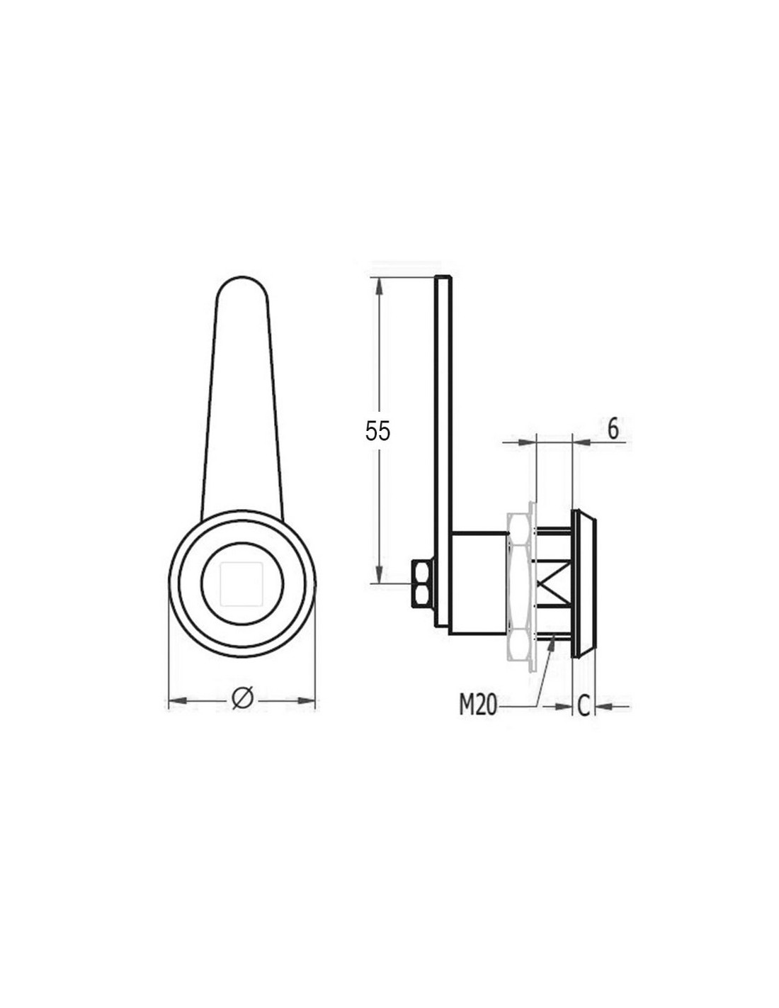 Cerradura armario AGA 192/193 Zamac cromado. Cierre 1/4 vuelta. Lengüeta recta C-55. Tuerca zamac M-20 y arandela. Cuadrado. Mod.192. 8 mm.