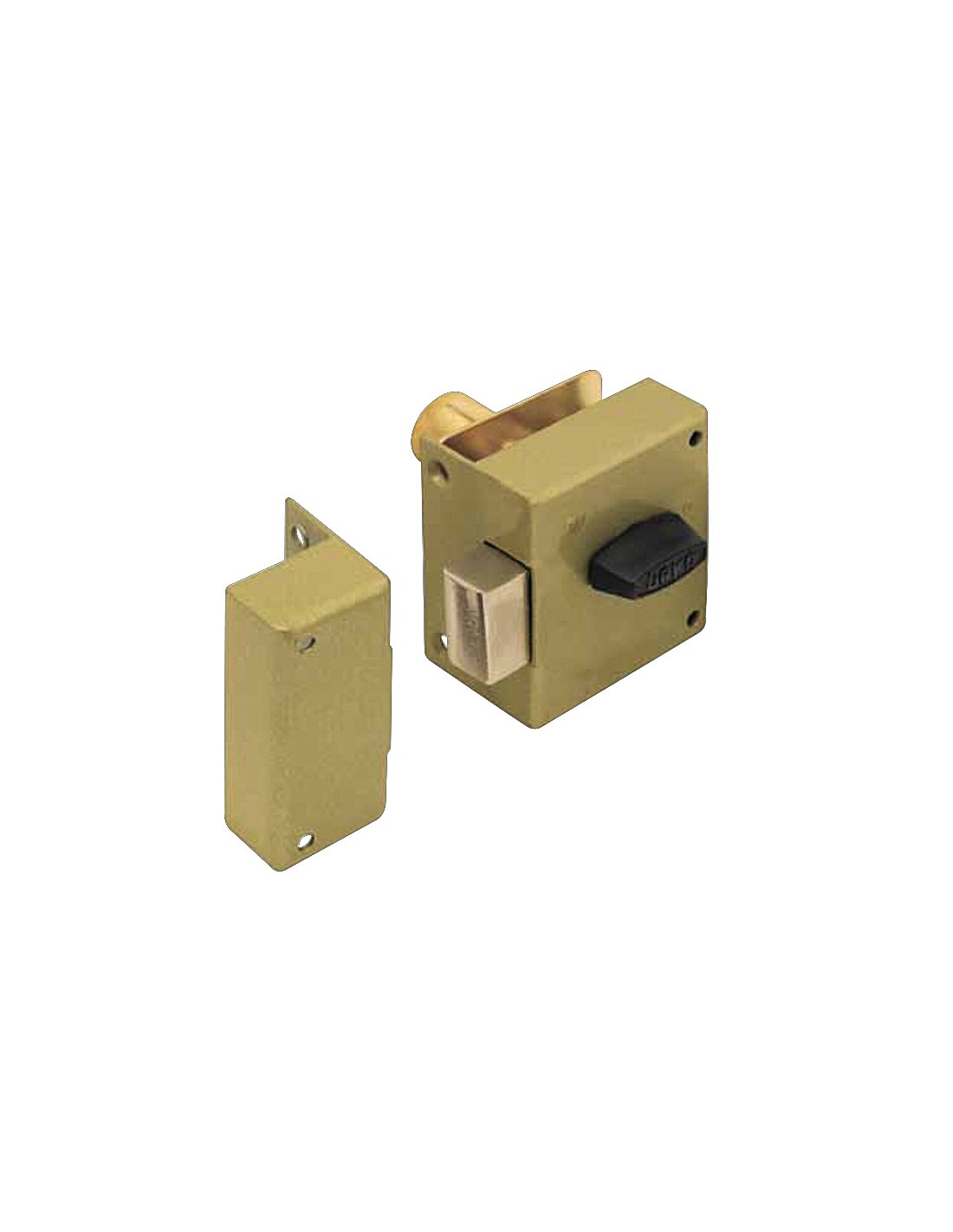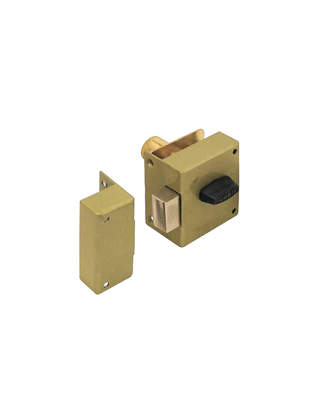 Cerradura sobreponer muebles URKO 38. Esmaltado. Cilindro exterior ø 20 mm y pestillo interior. 2 llaves niqueladas. 60x60 mm.