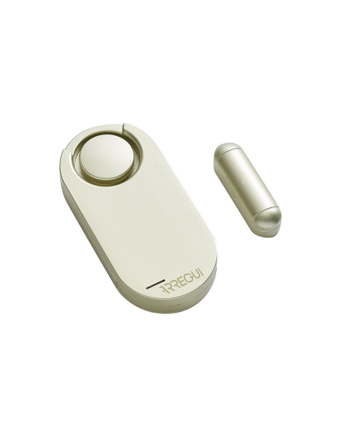Alarma puerta de entrada Arregui Alta potencia sonora: 130 dB con 3 niveles vibración. Medidas alarma: 9x4,3x1,3 cm. Medida sensor: 4,5x1,3x1,3 cm. Funciona con pilas Alarma: 2xAAA. Sensor: 1xCR2032. Blanco.