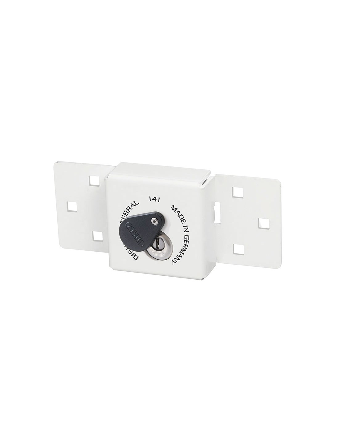 Cierre seguridad para vehículos ABUS 141/200 Acero resistente a la corrosión. Incluye candado Diskus 26/70. Fácil de instalar. Para furgonetas, contenedores y casetas de obra. Cierre universal para puertas batientes y puertas dobles de ala.