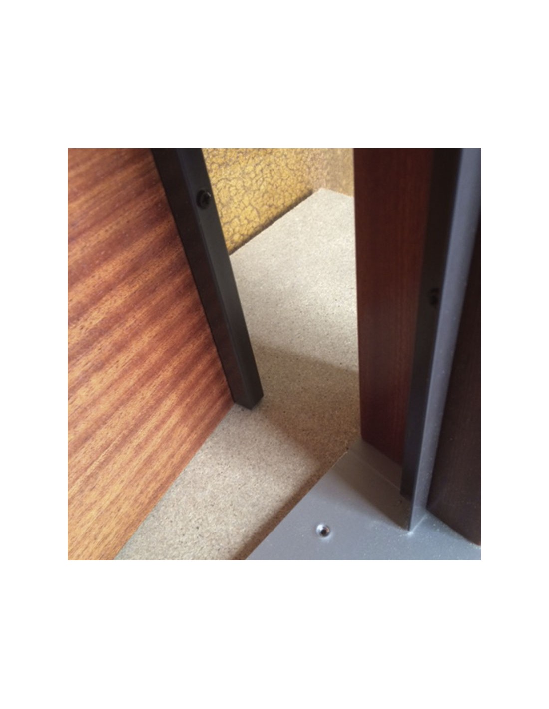 Barras antipalanca. Perfiles de acero de fácil instalación que dificultan la apertura de puertas mediante tarjetas o palancas. Juego compuesto por una barra cuadrada 14x14x1 mm y un ángulo 15x15x1,5 mm. Plata satinada. 2,10 m.