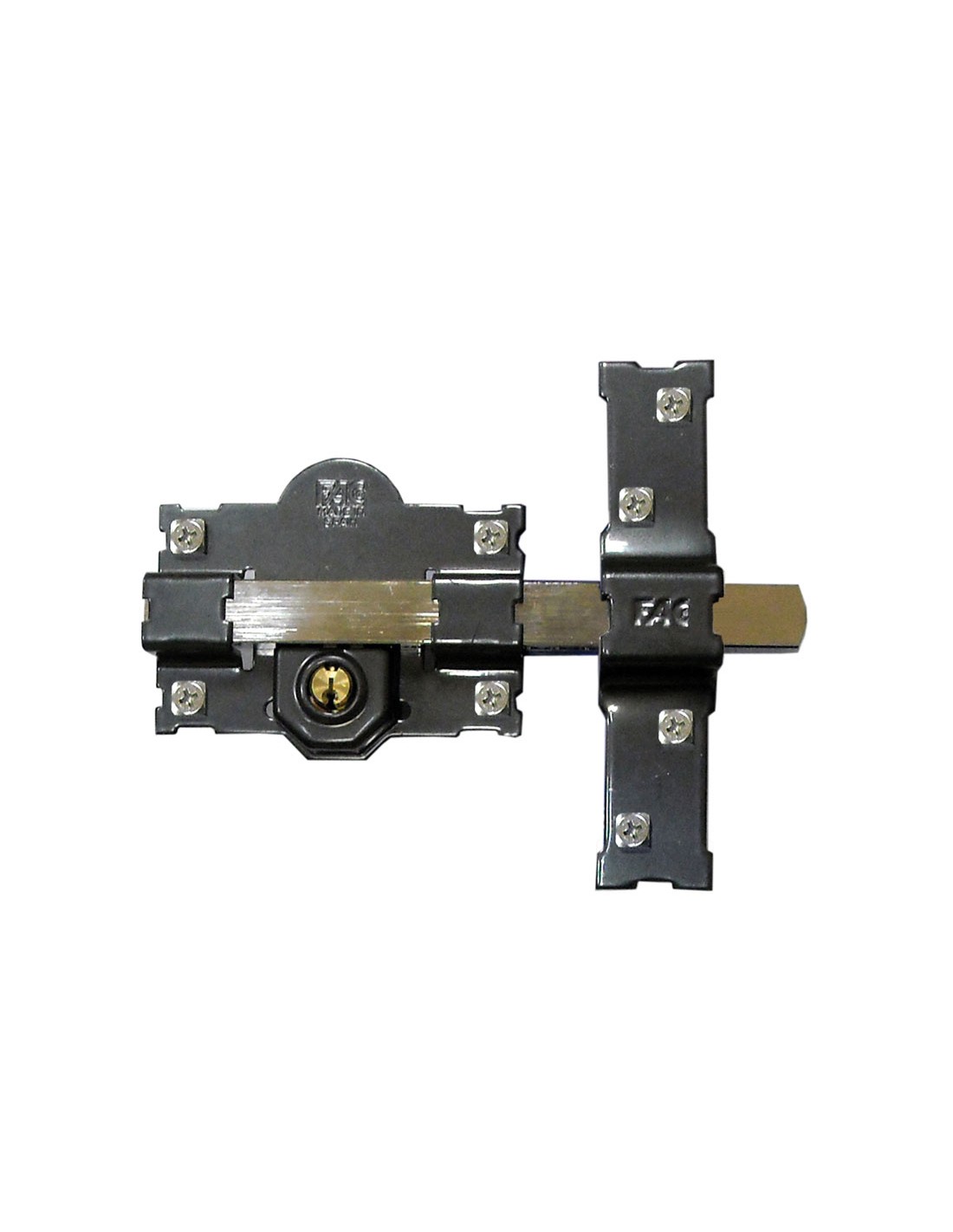 Cerrojo FAC 101L/105 Accionado interior y exteriormente por llave quedando siempre la barra fija. Barra en acero calibrado 18 mm. Placa en acero 2 mm. Cerradero en acero 3 mm. Cilindro redondo. Pintado. Cilindro 70 mm.