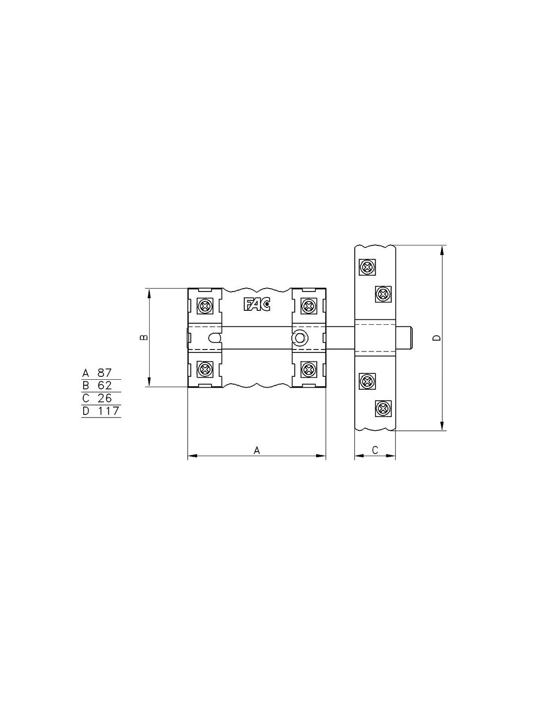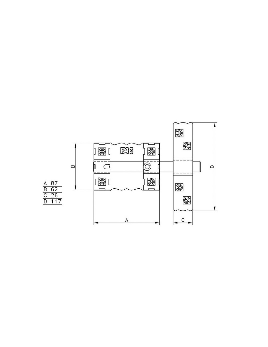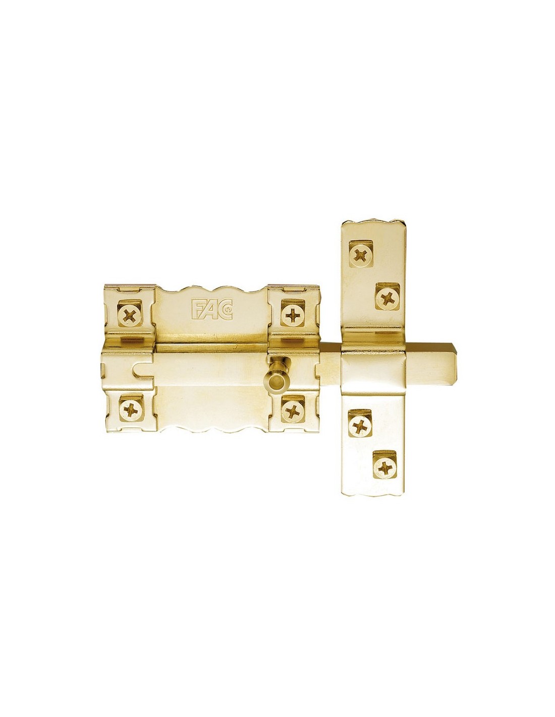 Cerrojo FAC P87 Sin llave. Colocación derecha, izquierda o vertical indistintamente. Barra de acero calibrado 14 mm. Placa de acero 2 mm. Cerradero en acero 3 mm. Dorado.