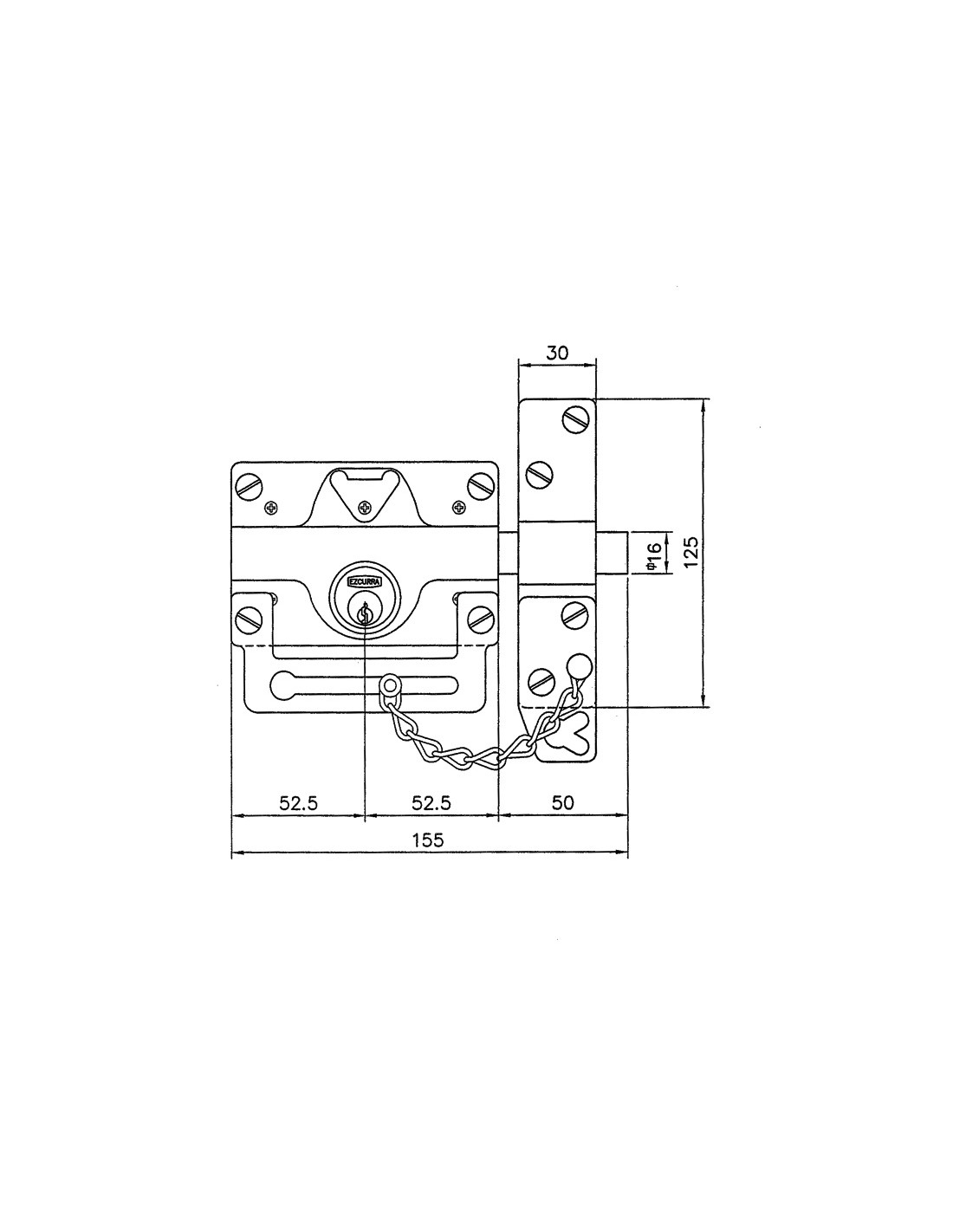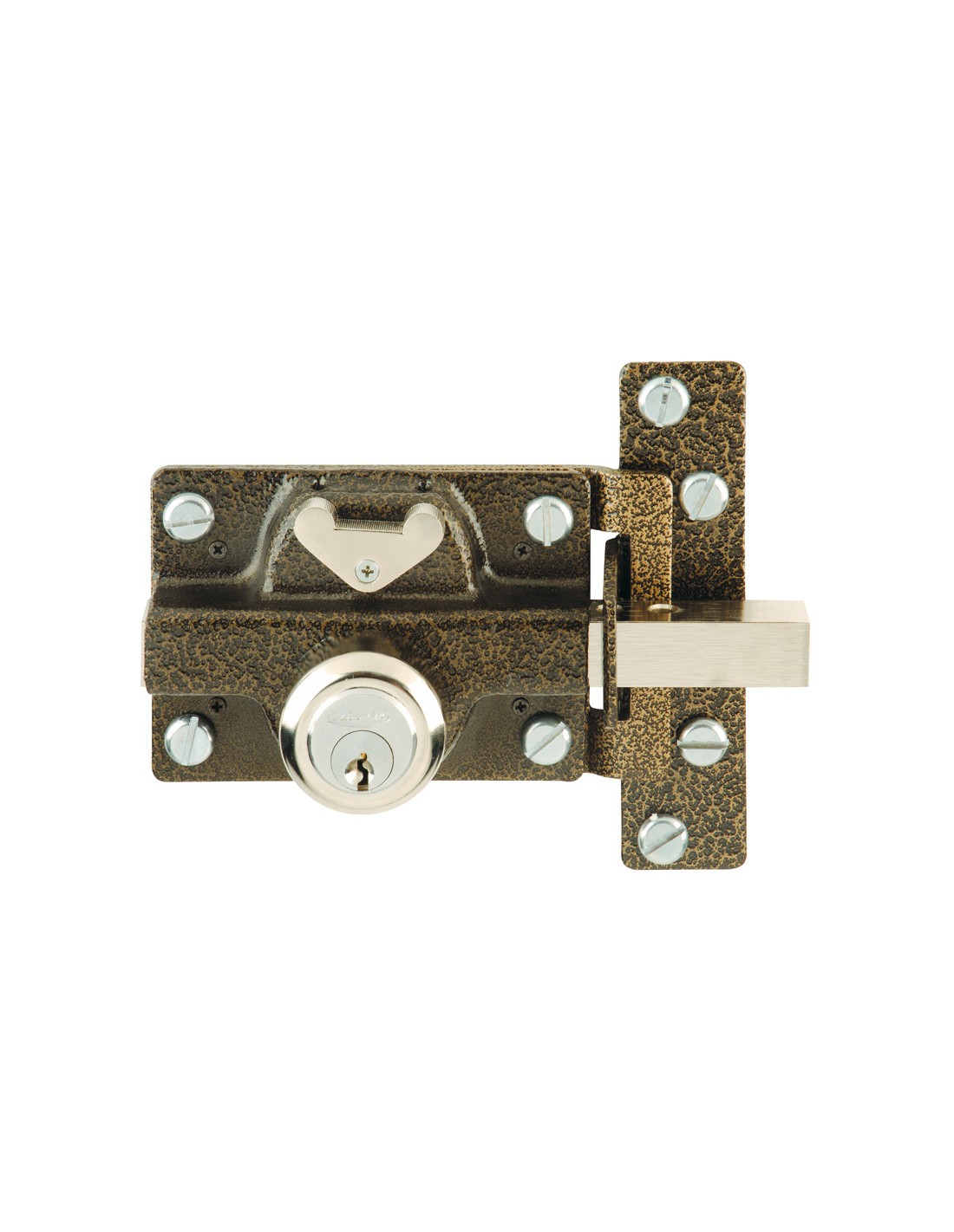 Cerrojo EZCURRA 550 Cerrojo de seguridad con condena interior. Doble cilindro redondo + 3 llaves. Metalizado.