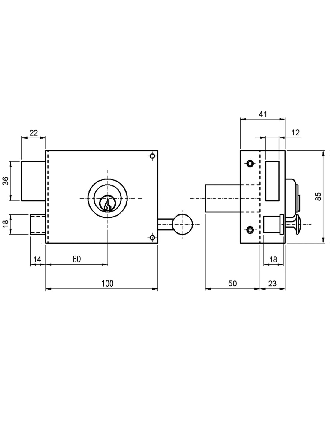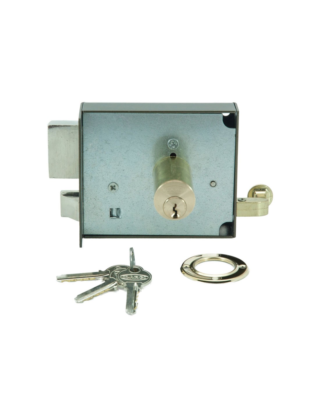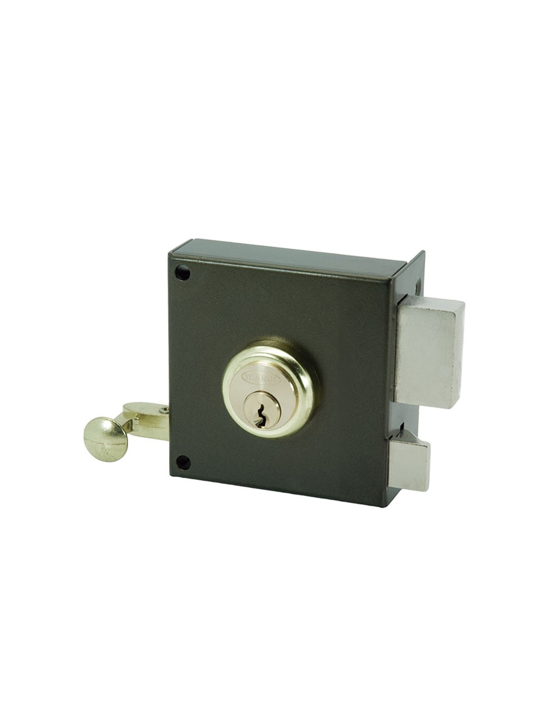 Cerradura sobreponer ILARGI 125A Cilindro de serreta y tirador accionado con llave por ambos lados. Picaporte accionaado con llave y tirador por el interior. Incluye 3 llaves. Cilindro redondo. Entrada 60 mm.