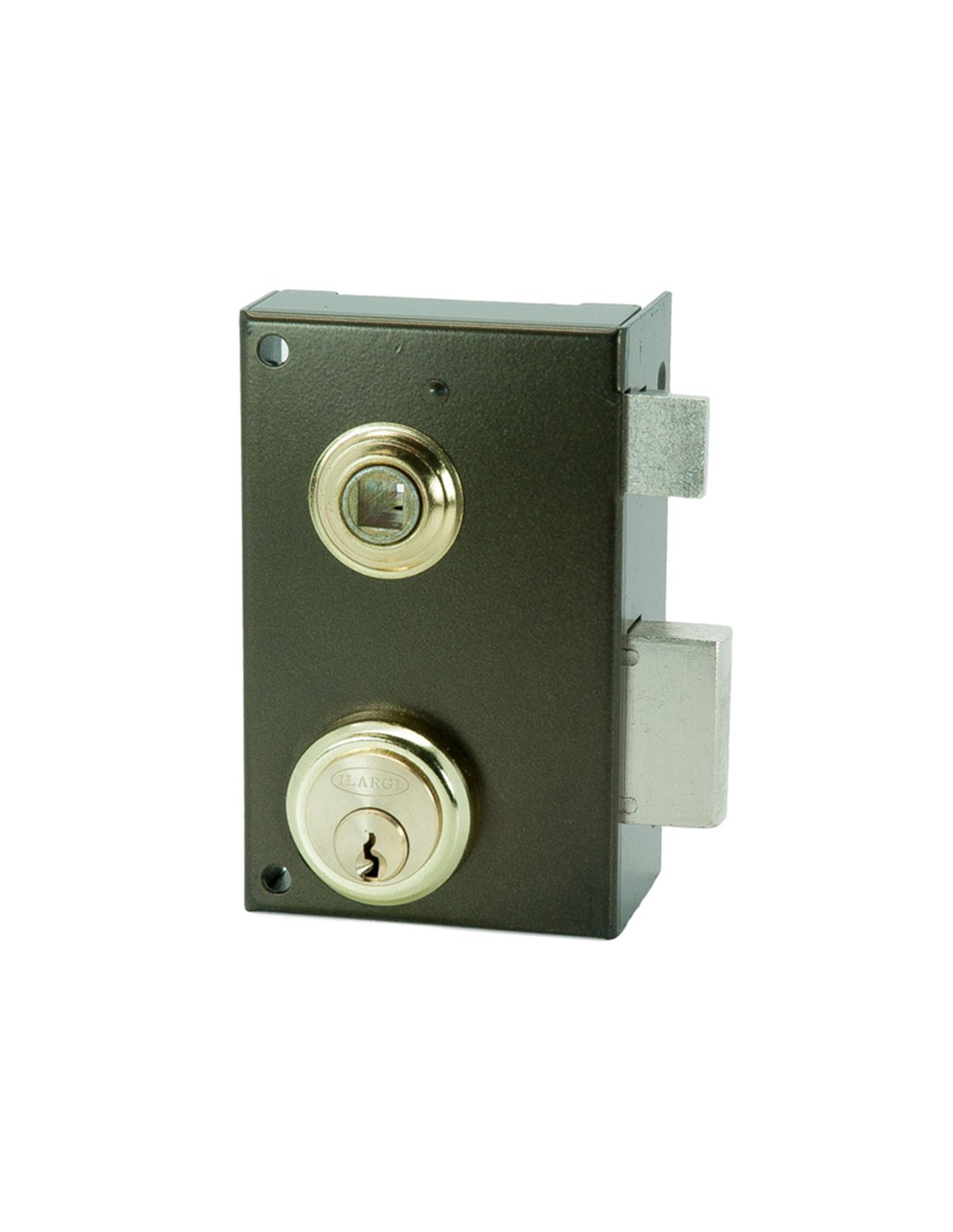 Cerradura sobreponer ILARGI 56B Cilindro accionado con llave por ambos lados. Picaporte accionado mediante manilla. Hierro esmaltado alta resistencia. Incluye 3 llaves. Cilindro pera. Entrada 43 mm.