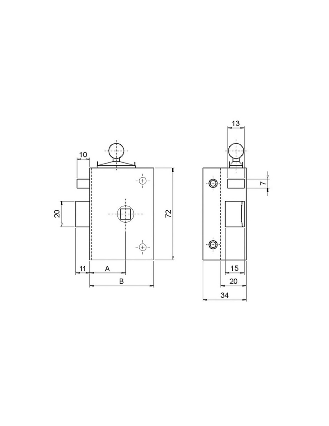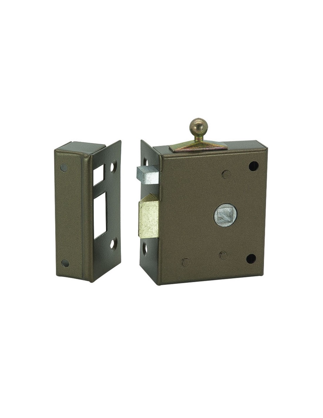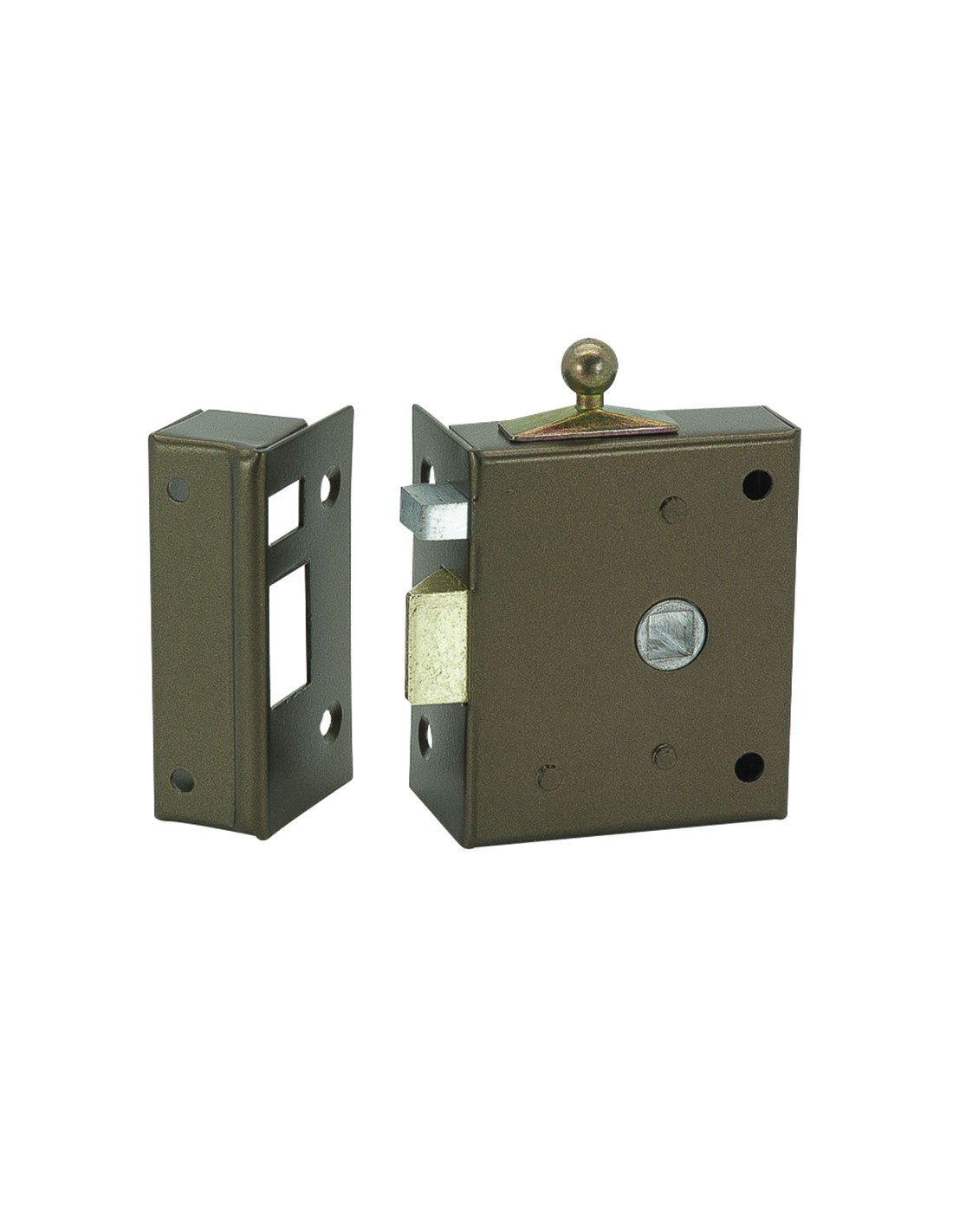 Picaporte sobreponer ILARGI 236 Accionado mediante manilla por ambos lados y palanca con botón interior. No tiene mano. 60 mm. Entrada 36 mm.