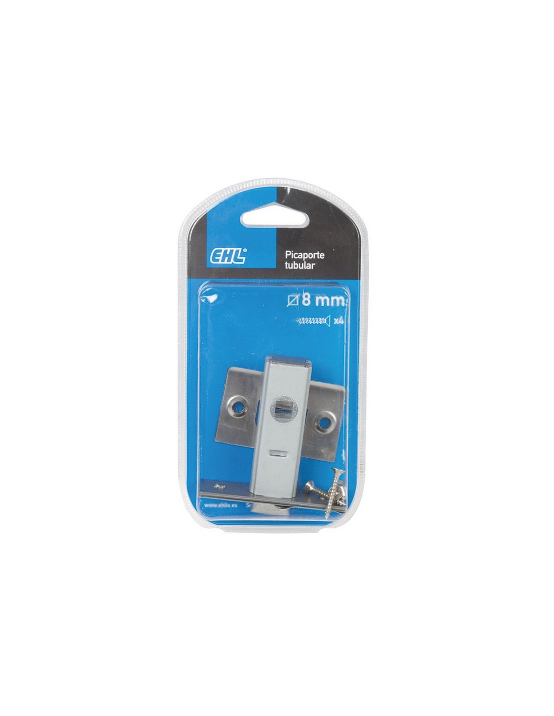 Picaporte tubular EHL Golpe solo. Cuadradillo 8 mm. Canto cuadrado.. Entrada 35 mm. Inox.