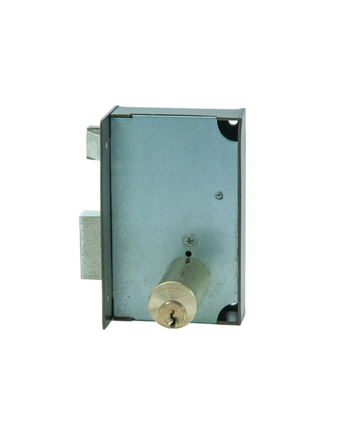 Cerradura sobreponer ILARGI 56A Cilindro y palanca accionada con llave por ambos lados y tirador por el interior. Hierro esmaltado alta resistencia. Incluye 3 llaves. Cilindro redondo. Entrada 36 mm.