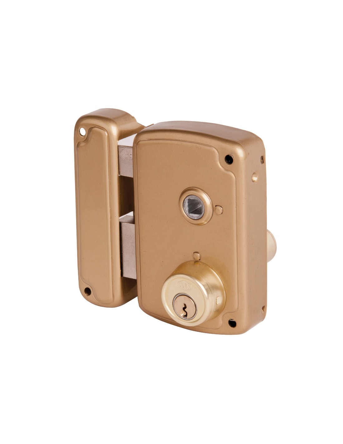 Cerradura sobreponer UCEM 4056B Cilindro mod. 4000F. Golpe accionado por manilla interior y llave exterior. Cierre mediante llave a ambos lados. Derecha. Entrada 35 mm.