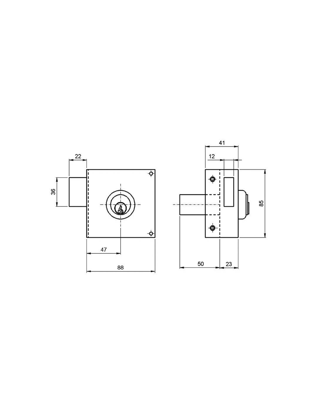 Cerradura sobreponer ILARGI 124A Cilindro de serreta y palanca accionada con llave por ambos lados. Incluye 3 llaves. Cilindro pera. Entrada 47 mm.