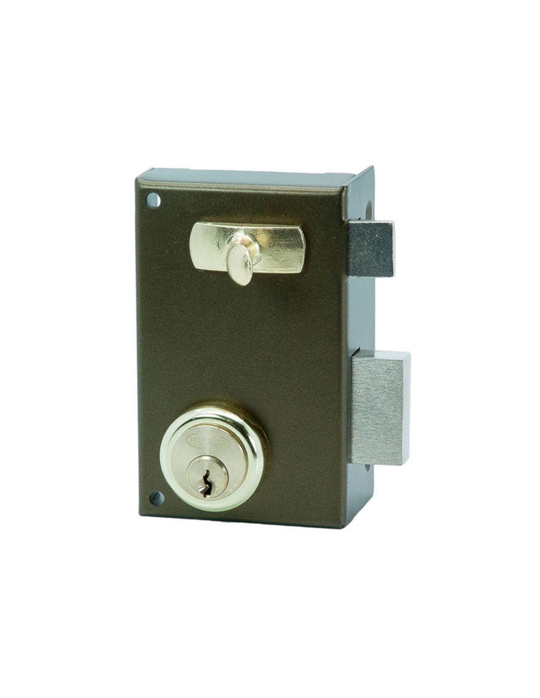 Cerradura sobreponer ILARGI 56A Cilindro y palanca accionada con llave por ambos lados y tirador por el interior. Hierro esmaltado alta resistencia. Incluye 3 llaves. Cilindro redondo. Entrada 36 mm.