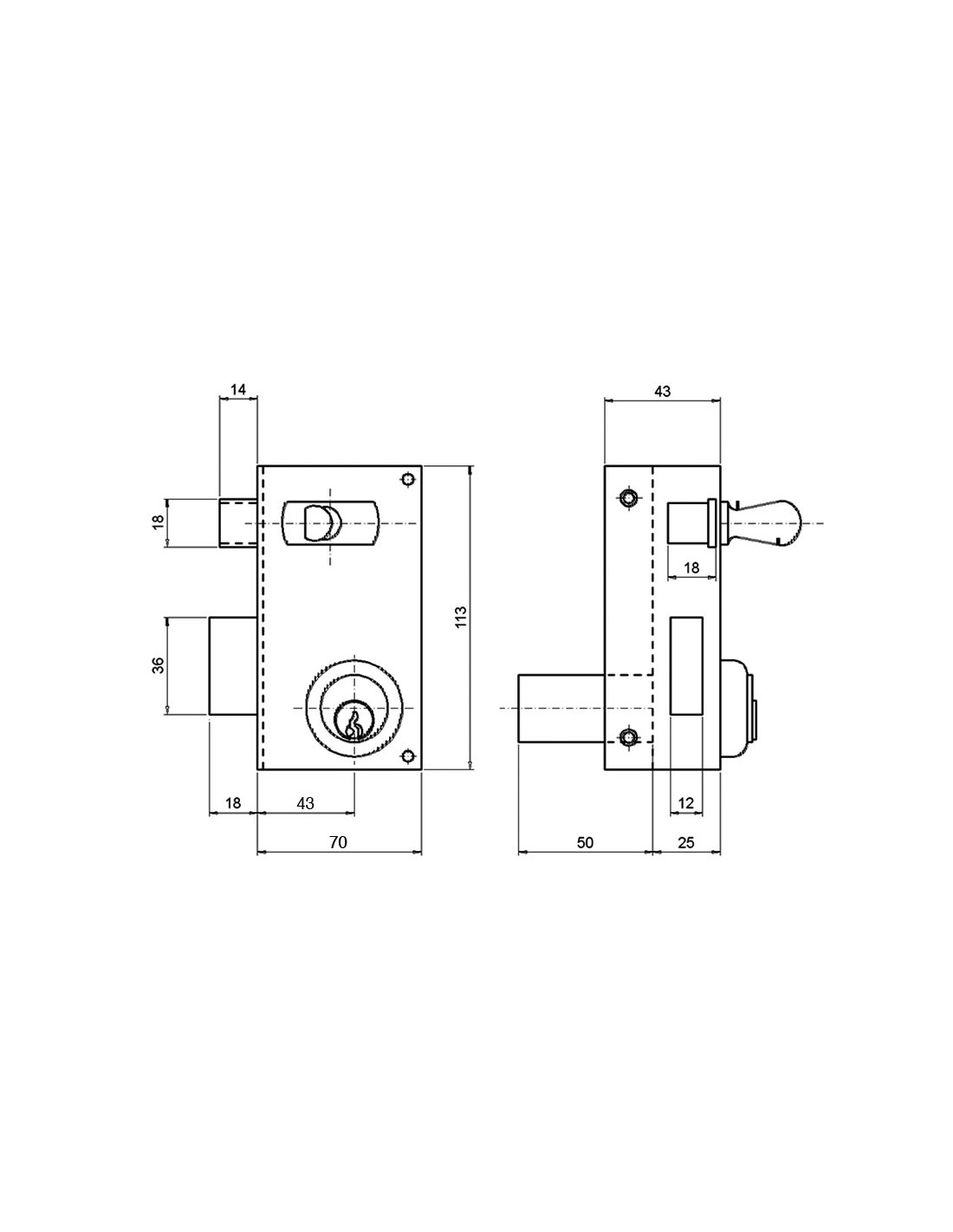 Cerradura sobreponer ILARGI 56A Cilindro y palanca accionada con llave por ambos lados y tirador por el interior. Hierro esmaltado alta resistencia. Incluye 3 llaves. Cilindro pera. Entrada 43 mm.
