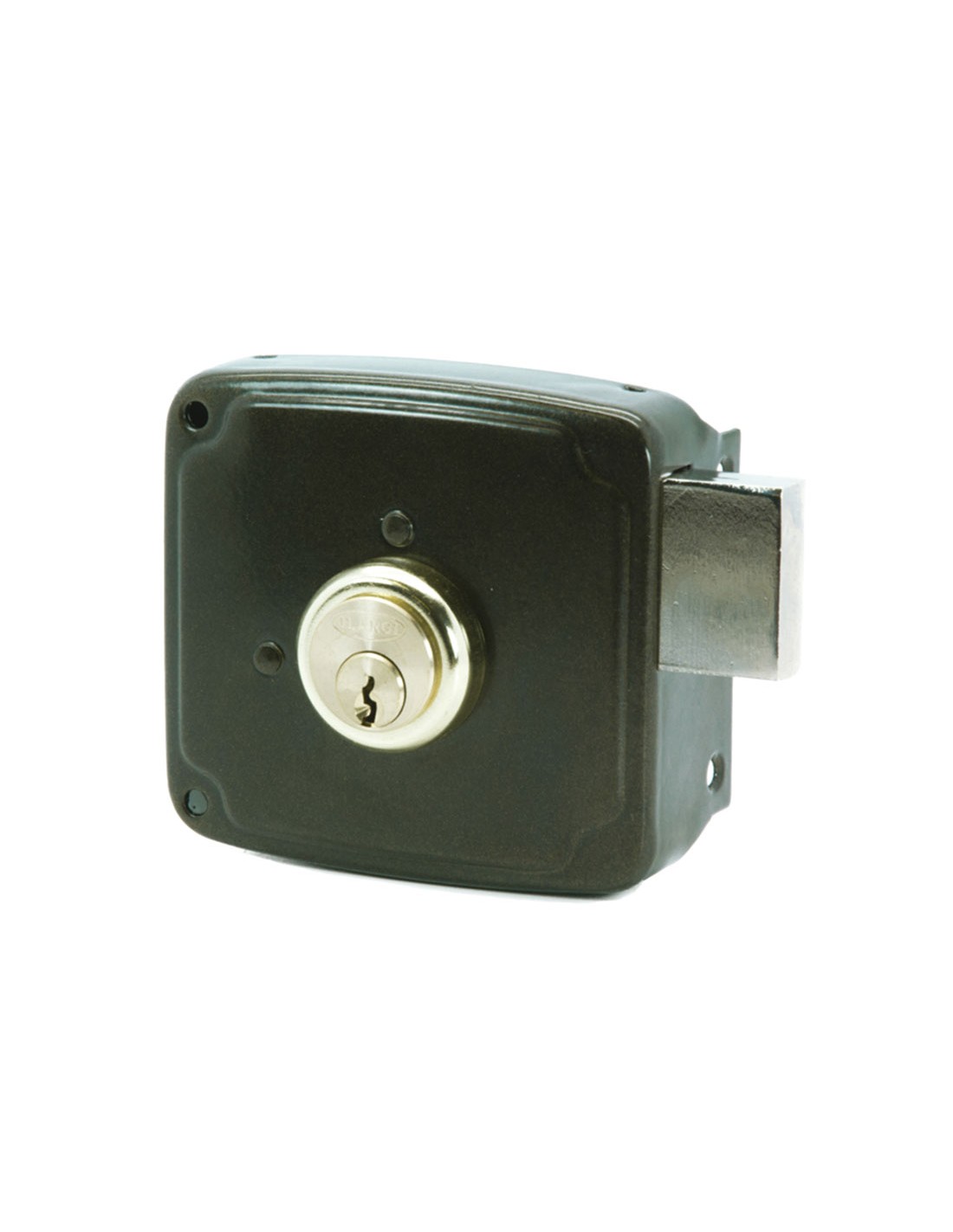 Cerrojo UCEM 4101 Cilindro mod. 4000F. Se acciona mediante llave exterior y botón interior. Pintado.