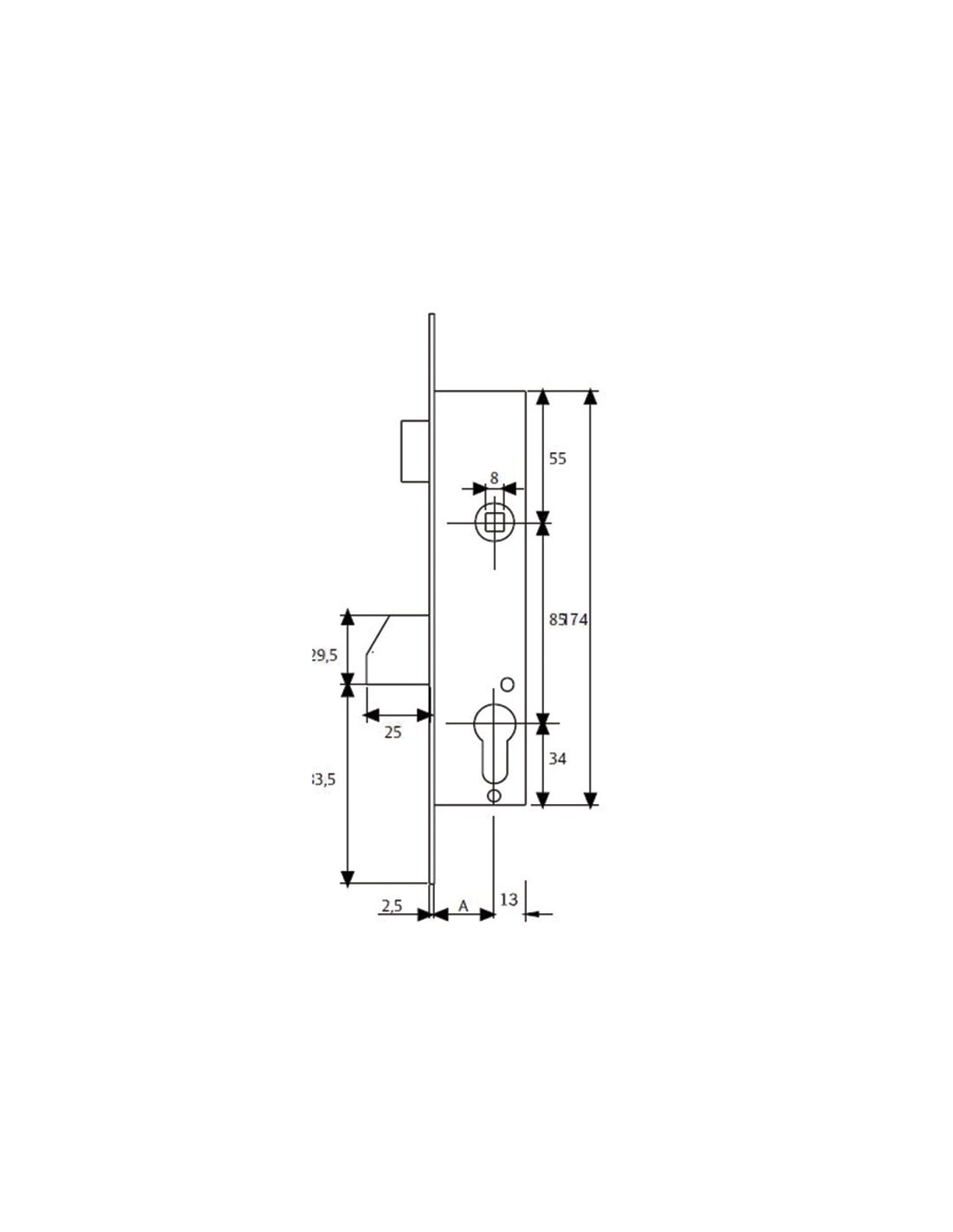 Cerradura embutir carpintería metálica TESA 2210 Golpe y llave. Palanca-gancho basculante diseñada para guiar el cierre. Picaporte reversible y regulable. Acero inoxidable. Entrada 20 mm.