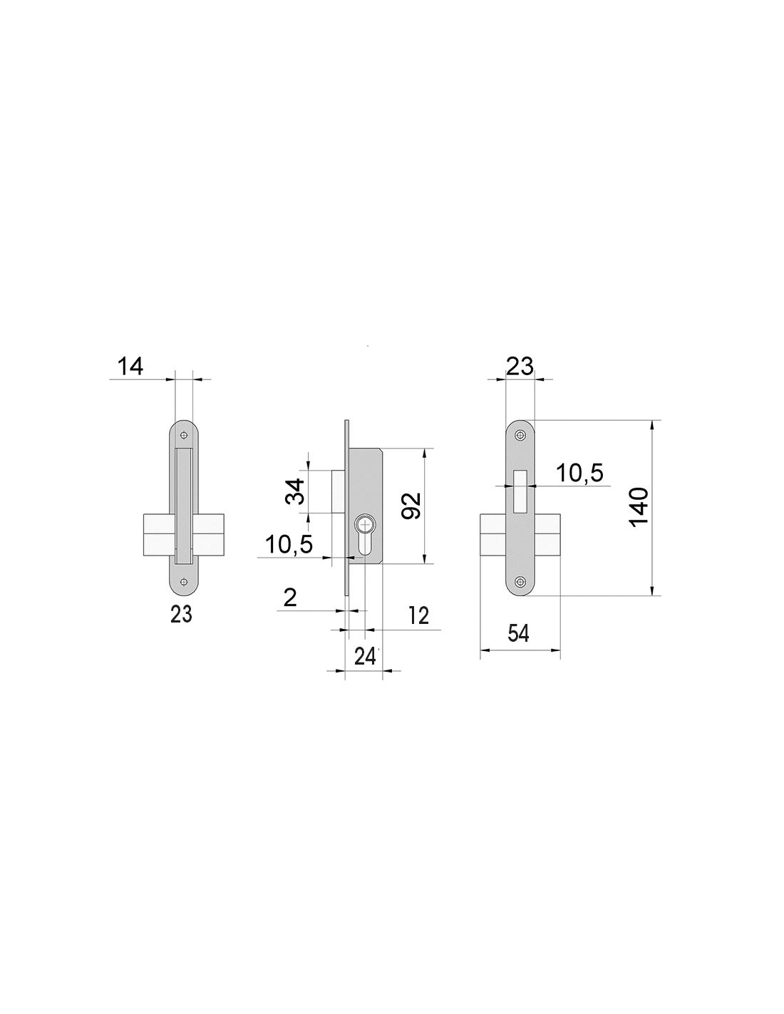 Cerradura embutir carpintería metálica LINCE 5552 Para perfiles estrechos. Palanca deslizante. Se acciona mediante llave. Frente niquelado. Cilindro europerfil C0333030L, leva 10,50 mm. Entrada 15 mm.