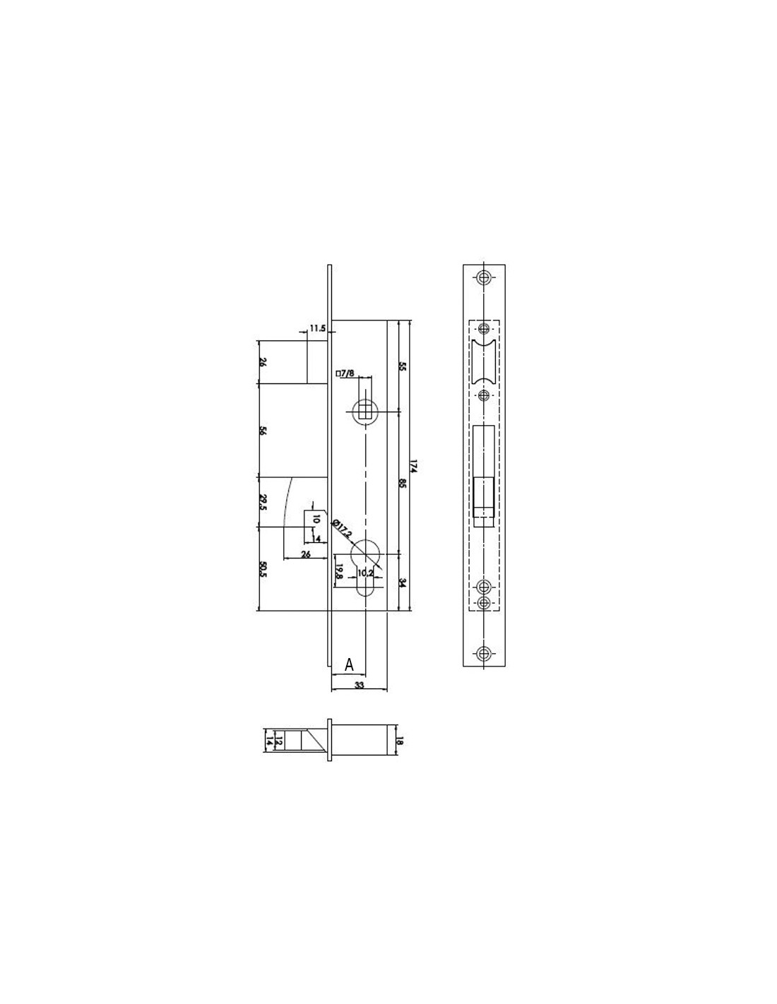 Cerradura embutir carpintería metálica TESA 2246 Palanca-gancho basculante. Golpe vaivén regulable y llave. Acero inoxidable. Entrada 20 mm.