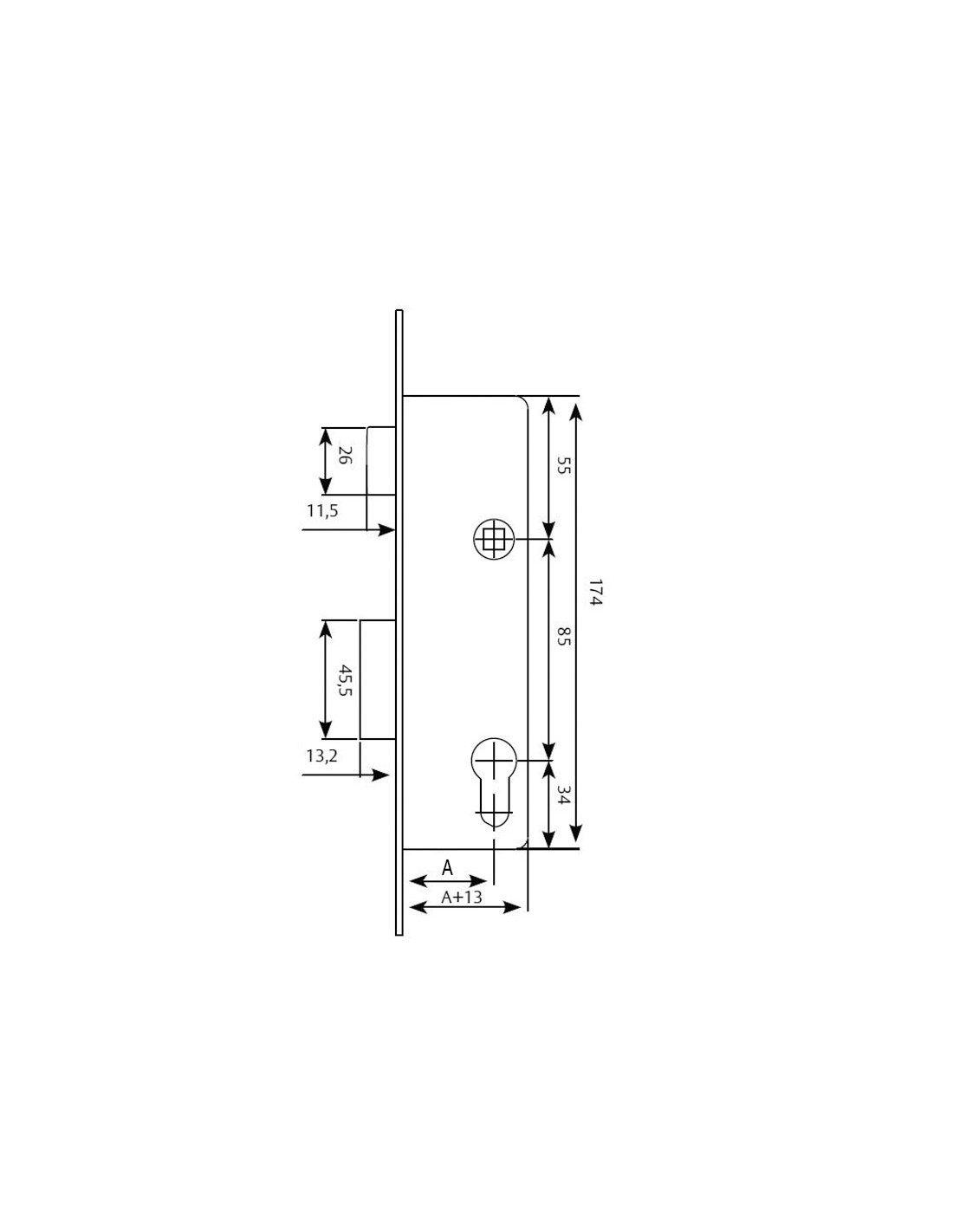 Cerradura embutir carpintería metálica TESA 2210 Palanca deslizante. Golpe y llave, reversible (la llave acciona el picaporte). Acero inoxidable. Entrada 20 mm.