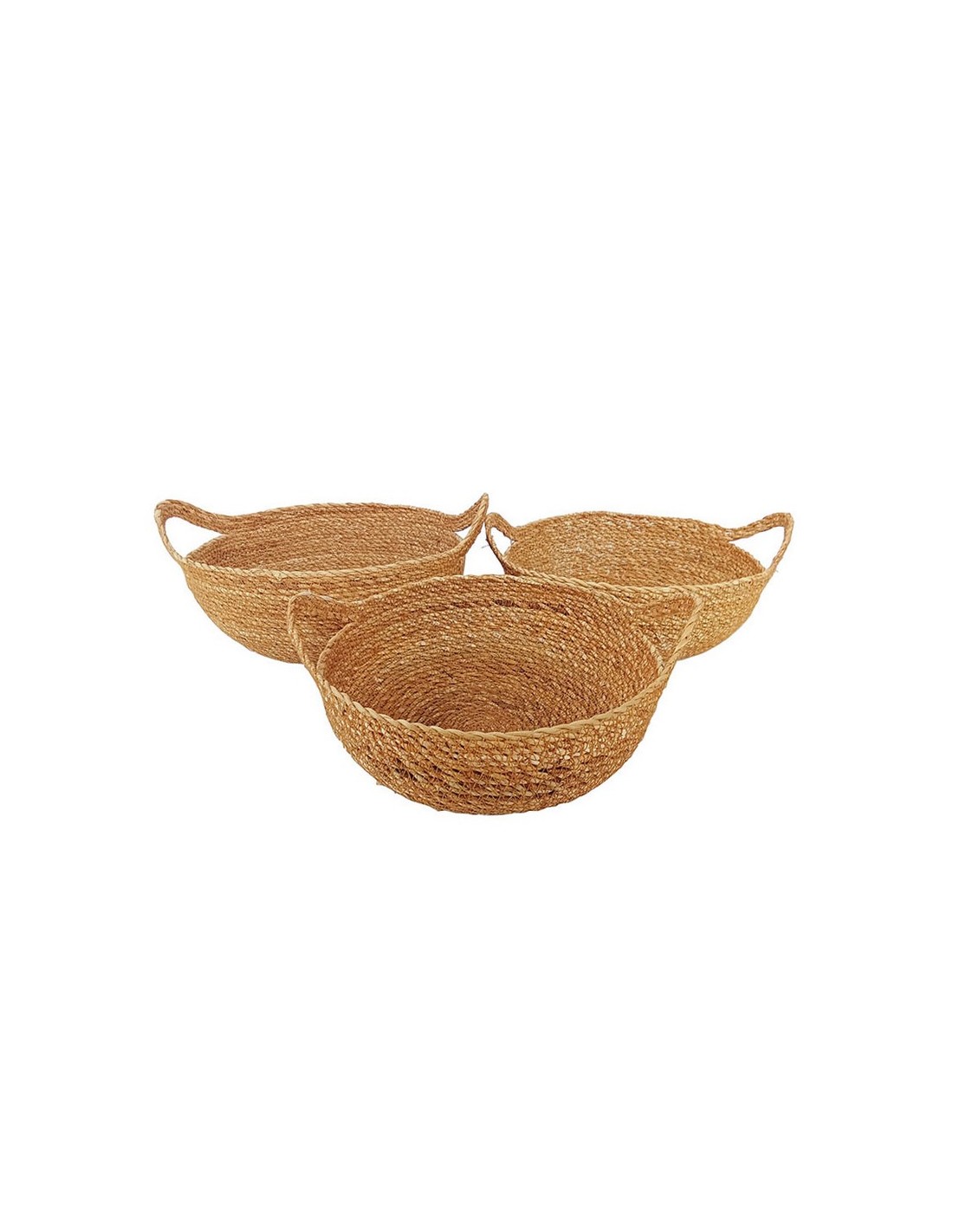 Cesta fibra natural Singapur Juego 3 unidades redondas con asas. Anea natural trenzada. Medidas: