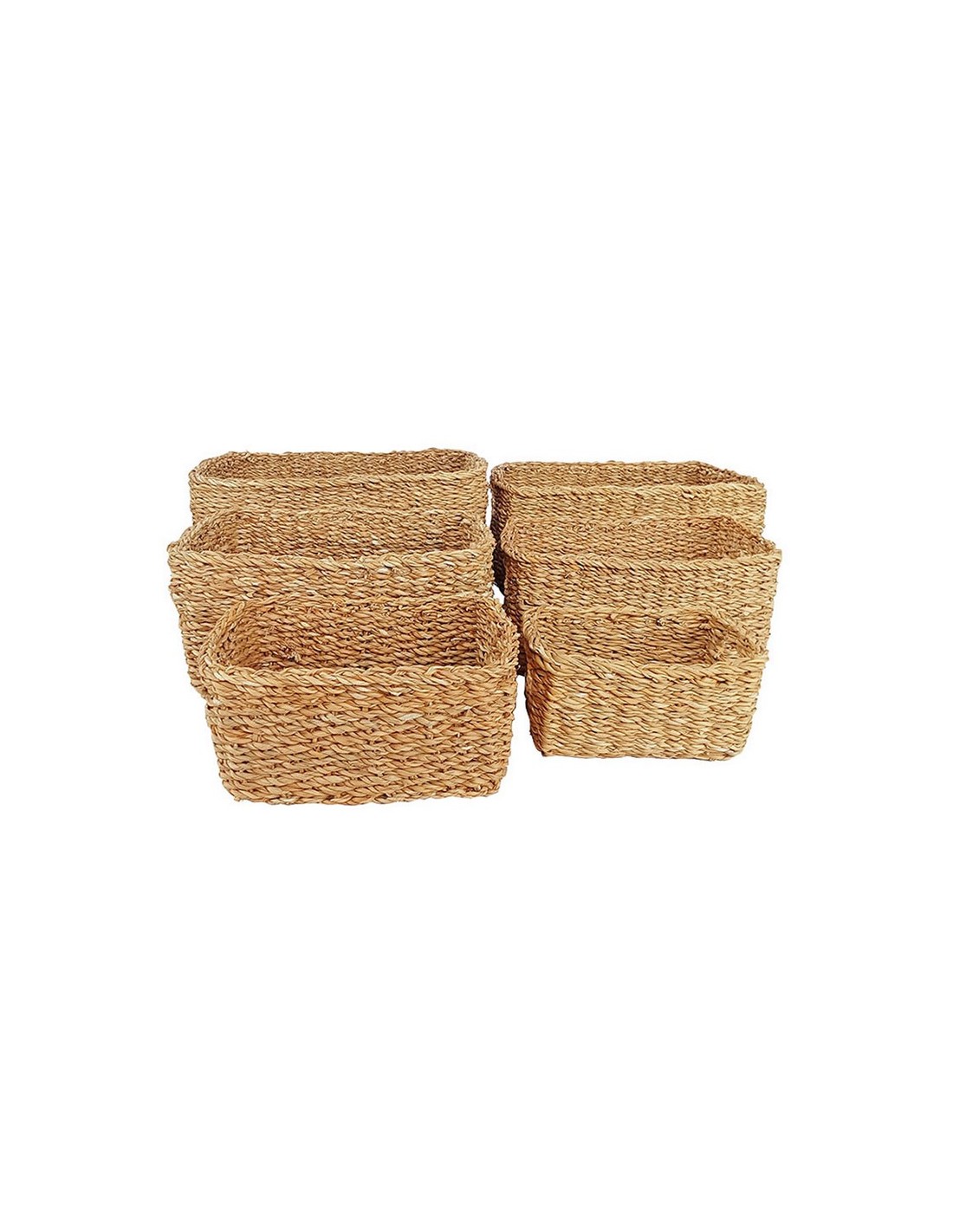 Cesta fibra natural Pekin Juego 6 unidades rectangulares. Anea natural trenzada. Medidas: