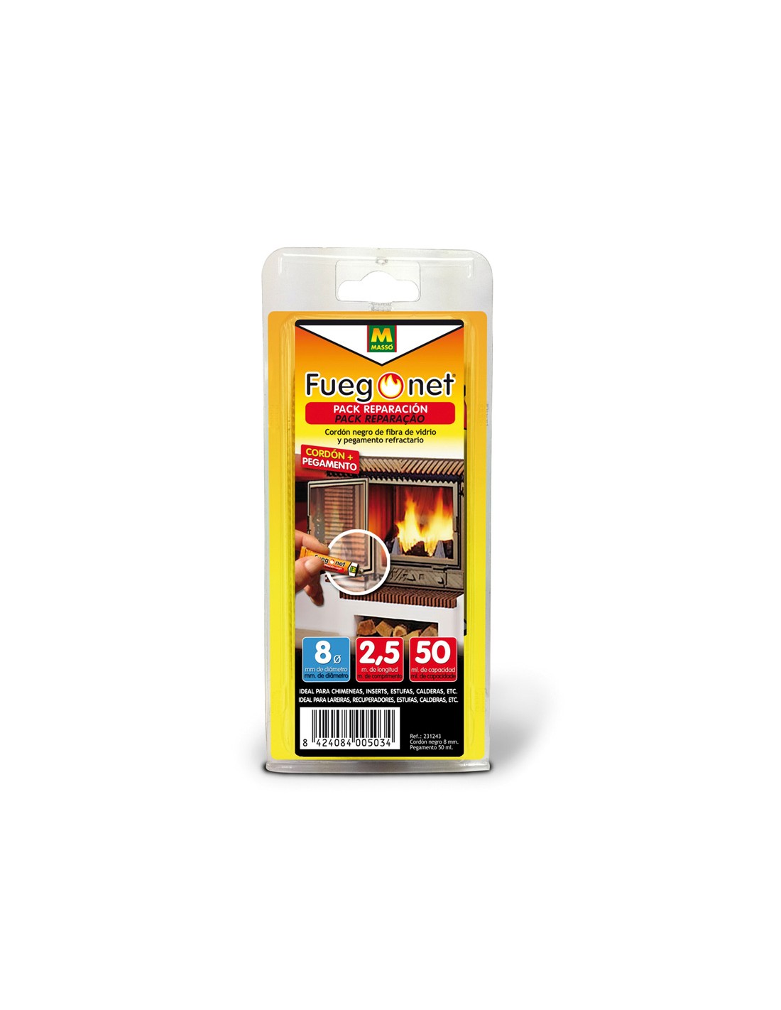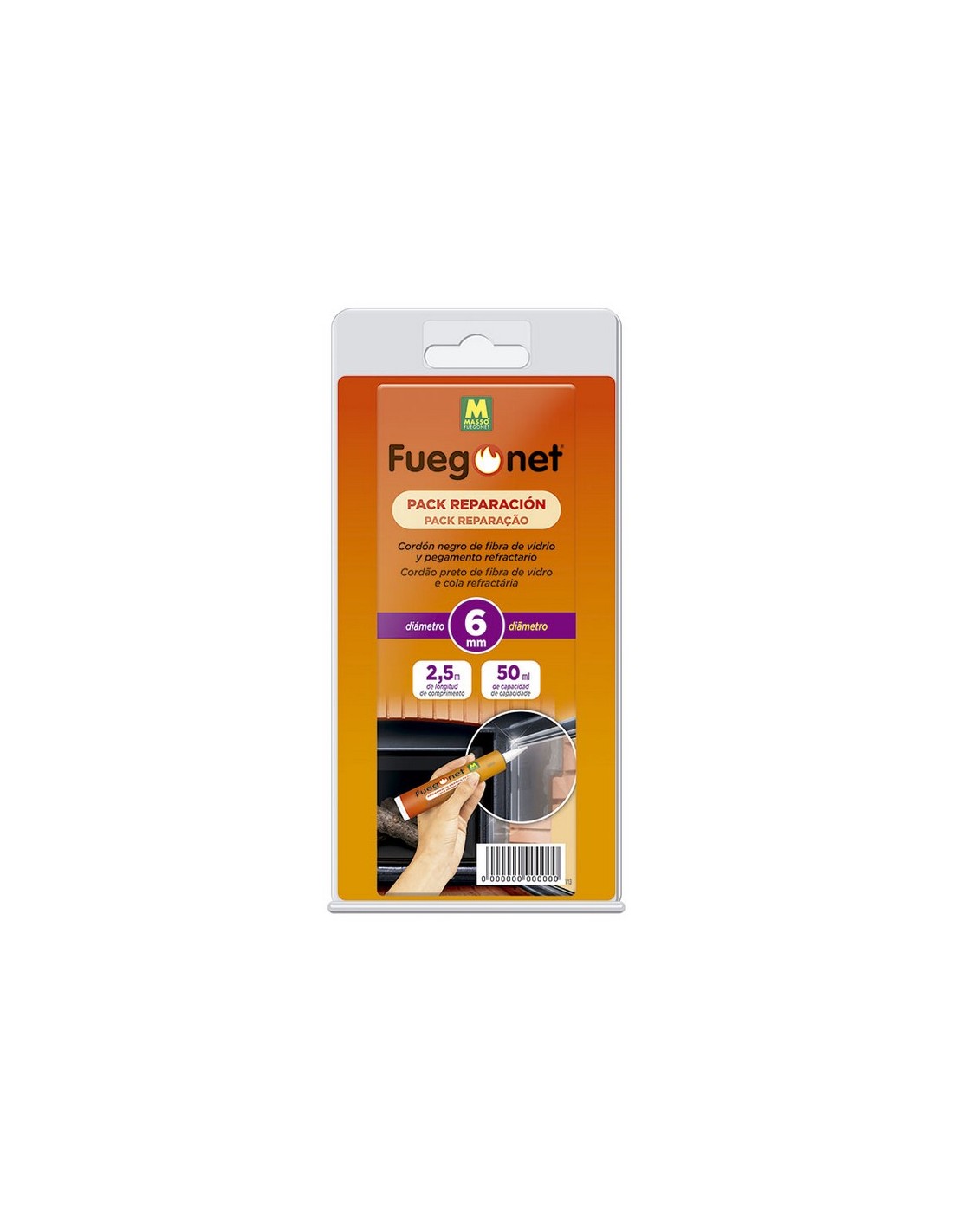 Cordón aislante fibra vidrio para estufas. Incluye adhesivo de fijación. ø 6
