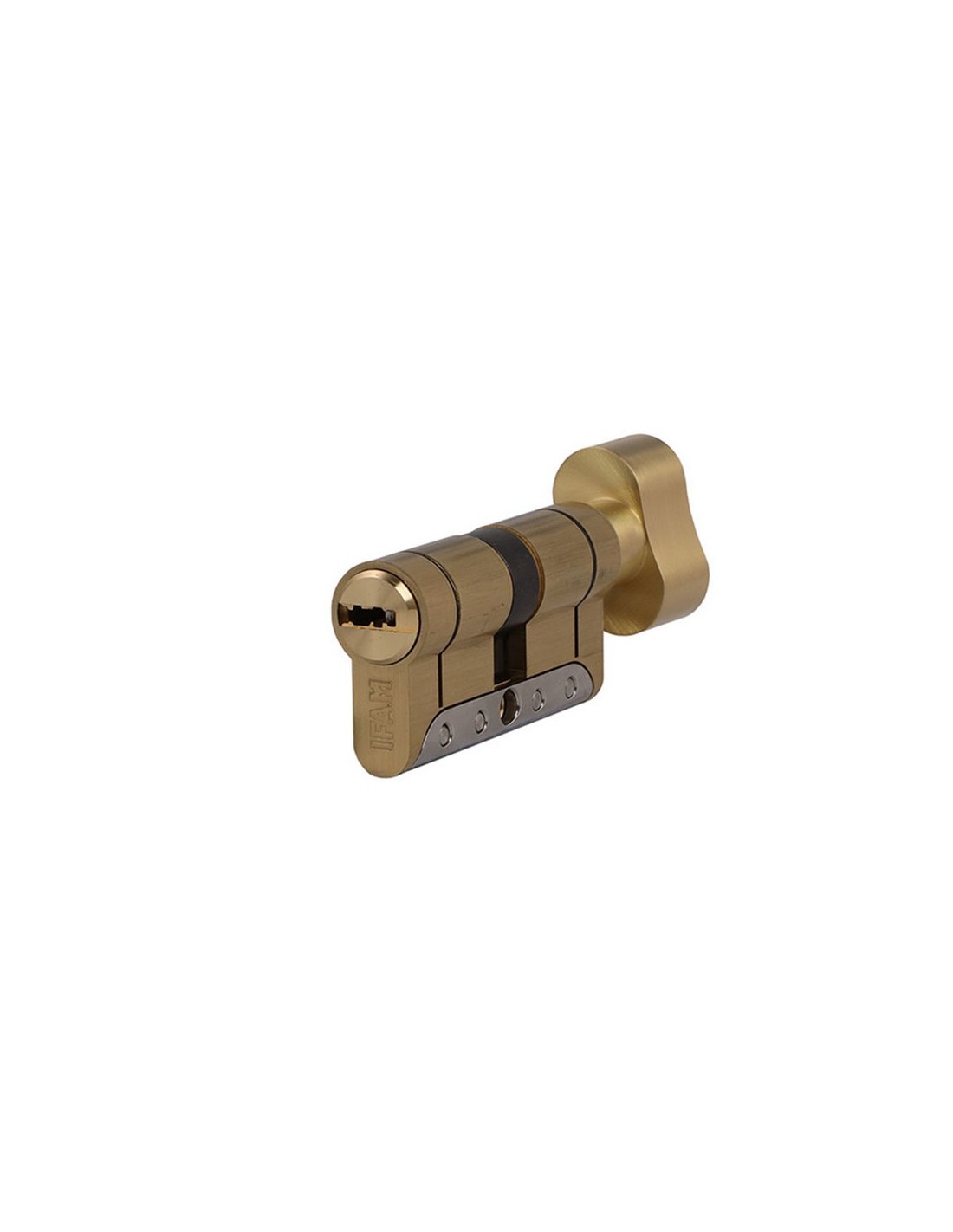 Cilindro seguridad IFAM Iridium M Perfil europeo de alta calidad. Doble sistema antibumping. Doble protección antitaladro y antiganzúa. Incluye 5 llaves de seguridad. Latonado. 60 mm. 30-30. Con pomo.