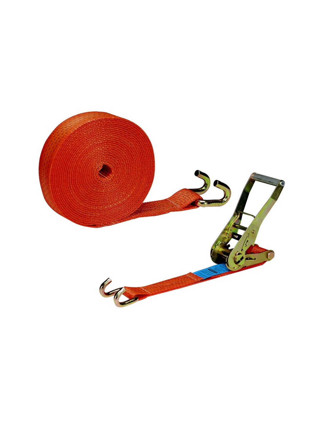 Ratchet PONSA 4000 kg Cinta de poliéster 50 mm x 8,5 m. Color naranja. Carga máx. 4.000 kg. Ganchos abiertos.