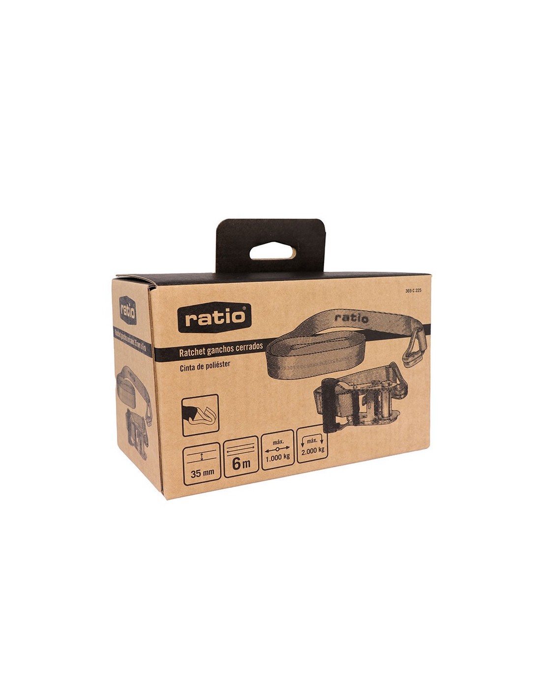 Ratchet RATIO 2.000 kg Cinta de poliéster. 35 mm x 6 m. Carga máx. 2.000 kg.