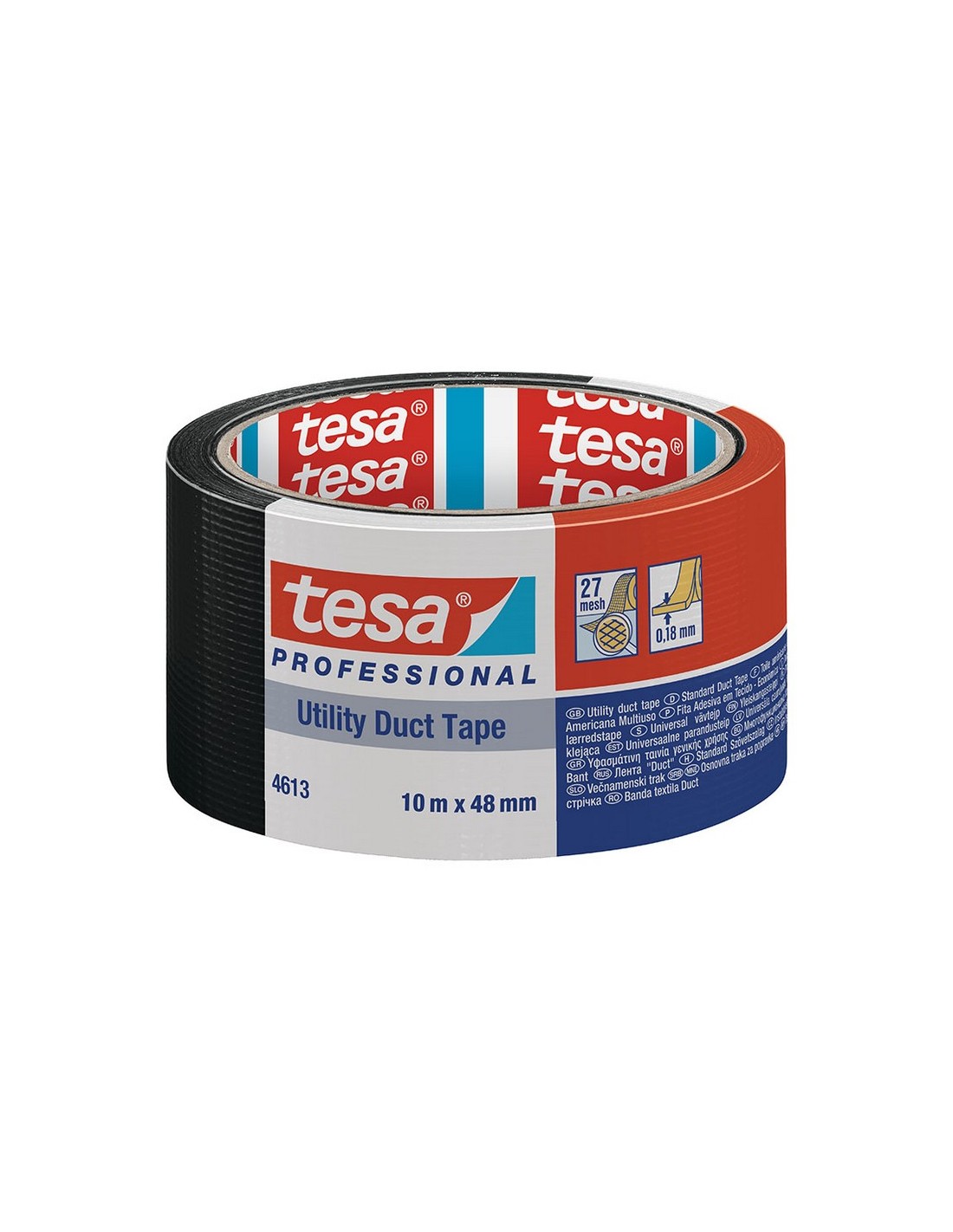 Cinta americana TESA Extra Power Universal Soporte tejido plástico PET y algodón recubierto con adhesivo de caucho natural. Adhesión en superficies rugosas. Se corta con la mano. 10 m x 48 mm. Negro.