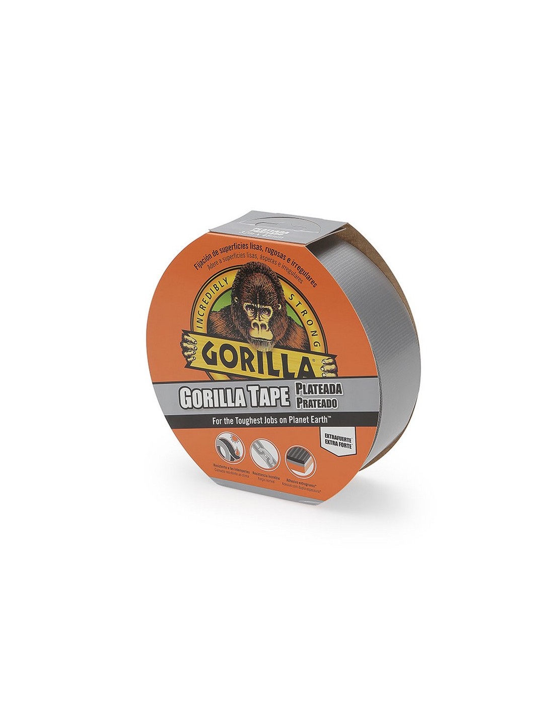 Cinta americana GORILLA Cinta extrafuerte, tri-capa e impermeable. Malla interna reforzada y adhesivo de doble grosor. Capaz de pegar metal, ladrillo, estuco, madera y otros. 32 m x 48 mm. Plata.