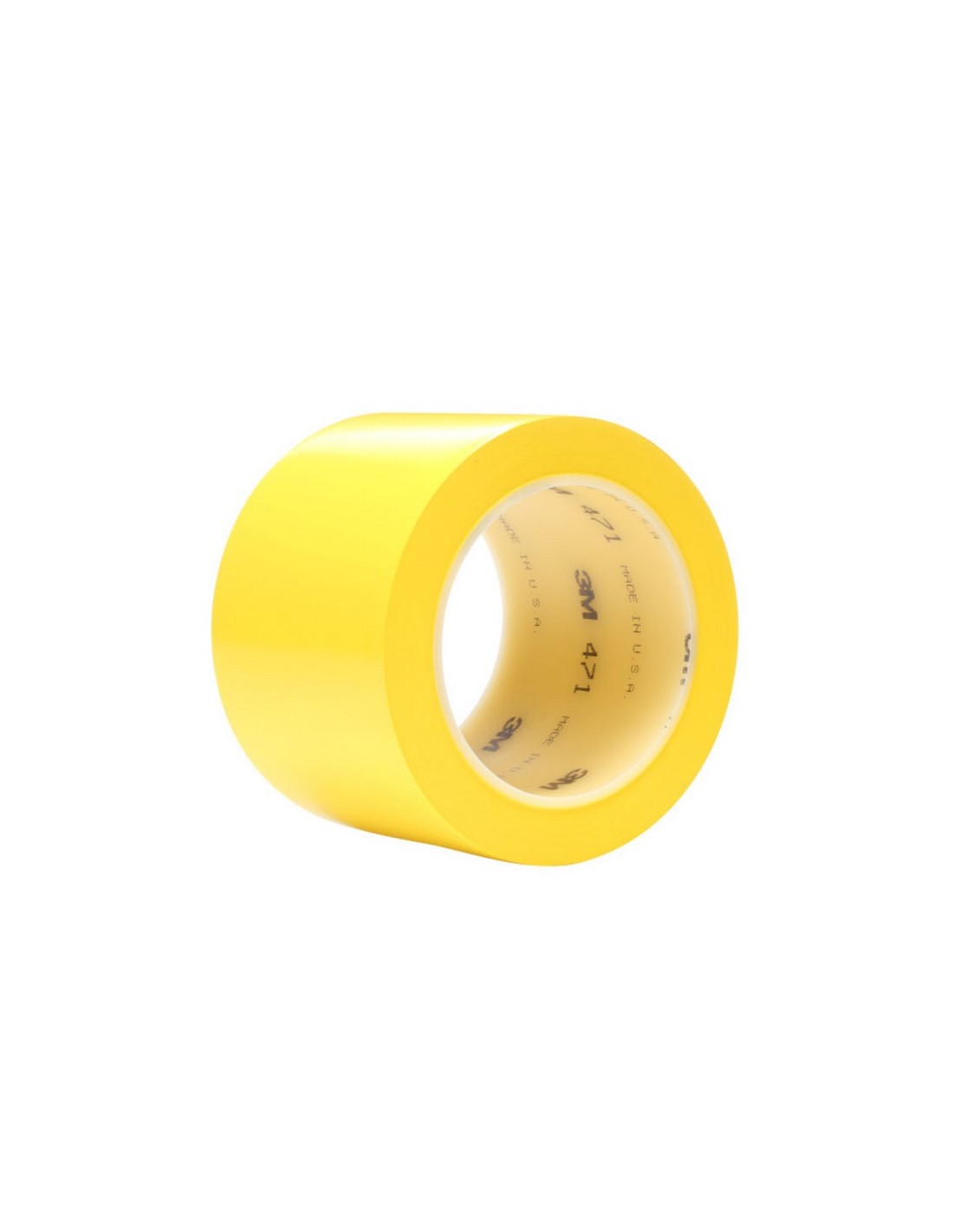 Cinta adhesiva señalización 3M 471 Para demarcar áreas de peligro y pasillos, codificar por colores, enmascarar pintura, empalmar y como moldura decorativa, entre otros fines. Fabricada con soporte de vinilo y adhesivo de caucho, esta versátil cinta resiste arañazos, el desgaste y la intemperie para ofrecer un uso duradero. Amarillo. 50x33 m.