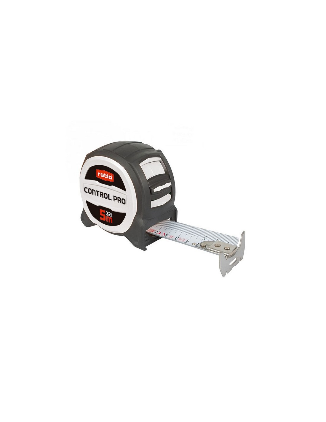 Flexómetro magnético RATIO Control Pro Carcasa ABS con recubrimiento antideslizante. Cinta super ancha de 32 mm y con numeración doble cara (blanca/blanca). Revestimiento nilón antireflex. Gancho inox doble reforzado y magnético. Botón de bloqueo y clip de grandes dimensiones para cinturón. Homologado CE, clase de Precisión II. 5 m. Cinta 32 mm.