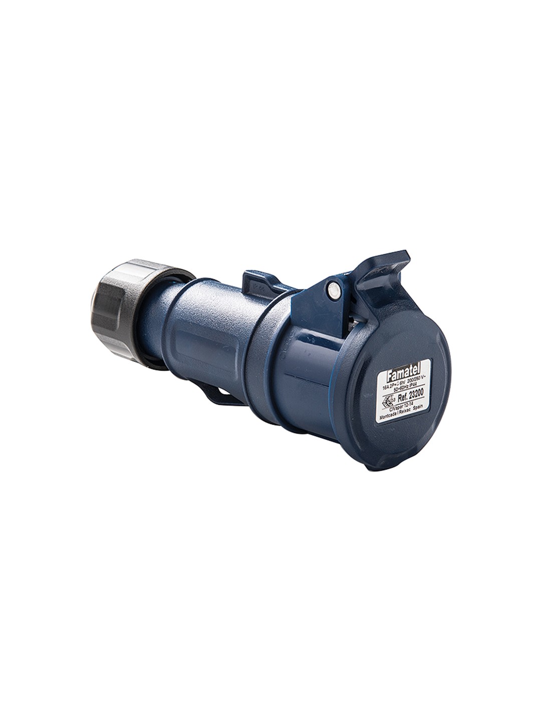 Base y clavija industrial FAMATEL. IP44. Clavija de montaje y cableado rápido de baja tensión 50/60 Hz. Base 2P+T 32A. 220/240 V.