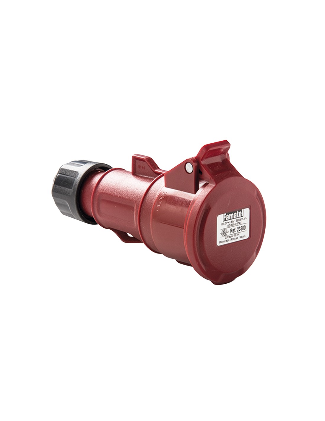 Base y clavija industrial FAMATEL. IP44. Clavija de montaje y cableado rápido de baja tensión 50/60 Hz. Base 3P+N+T 16A. 380/415 V.