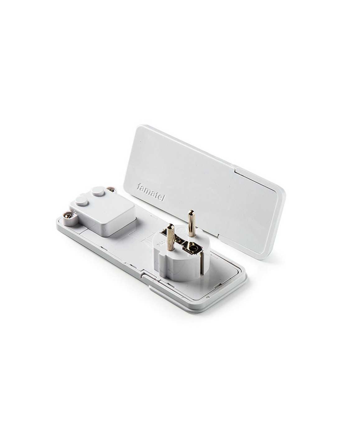 Clavija enchufe FAMATEL T/T lateral. 16 A / 250 V. Blanco.