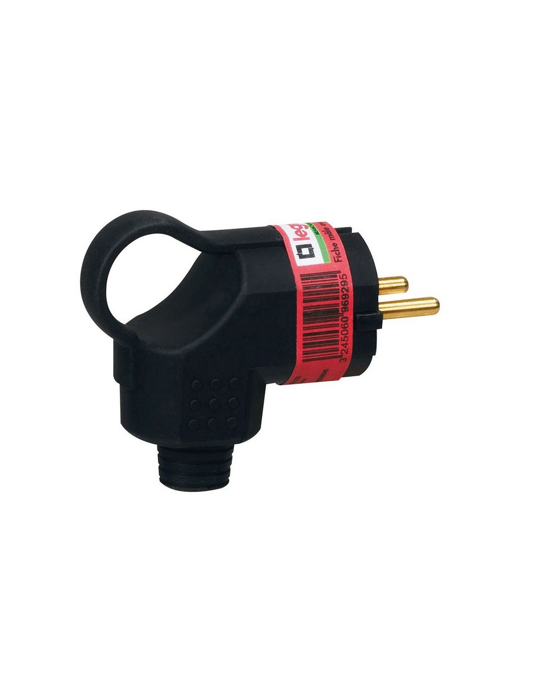 Base y clavija enchufe caucho LEGRAND De uso profesional en caucho negro de gran resistencia. Potencia máxima trabajo 3.680 W y 16 A a 230 V. Clavija 2P+T 16 A. Con anillo tirador.