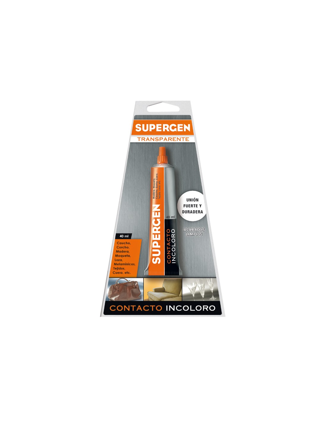 Adhesivo contacto TESA Supergen. Pega con la máxima resistencia sin perder flexibilidad. Para madera y derivados, contrachapado, aglomerados, corcho, cuero, piel, moquetas, tejidos, papel, caucho, goma, vidrio, etc. Tubo 40 ml. incoloro.